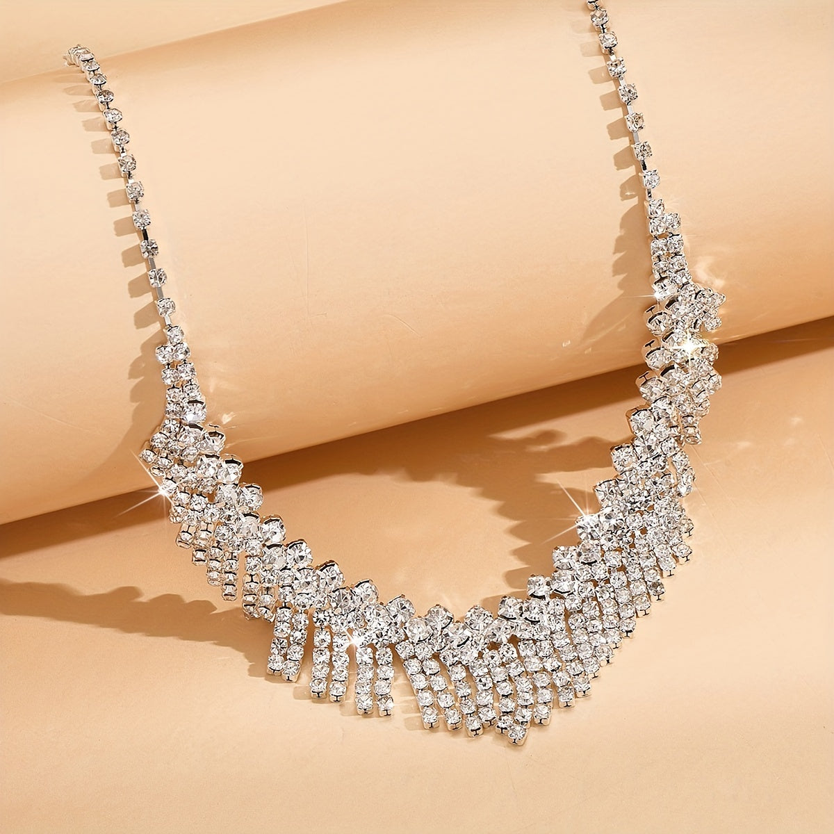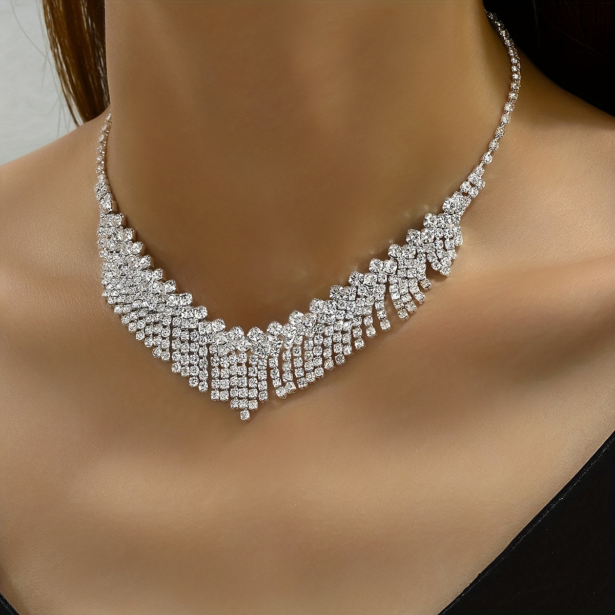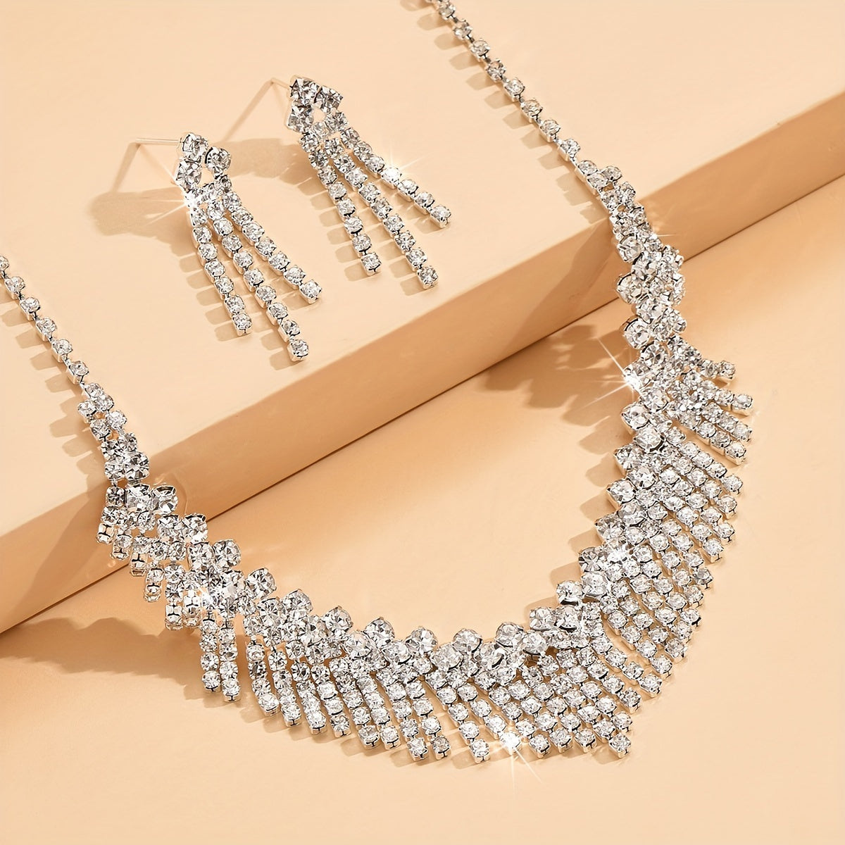 3pcs Silver Plated Rhinestone Jewelry Set for Evening Party Outfits