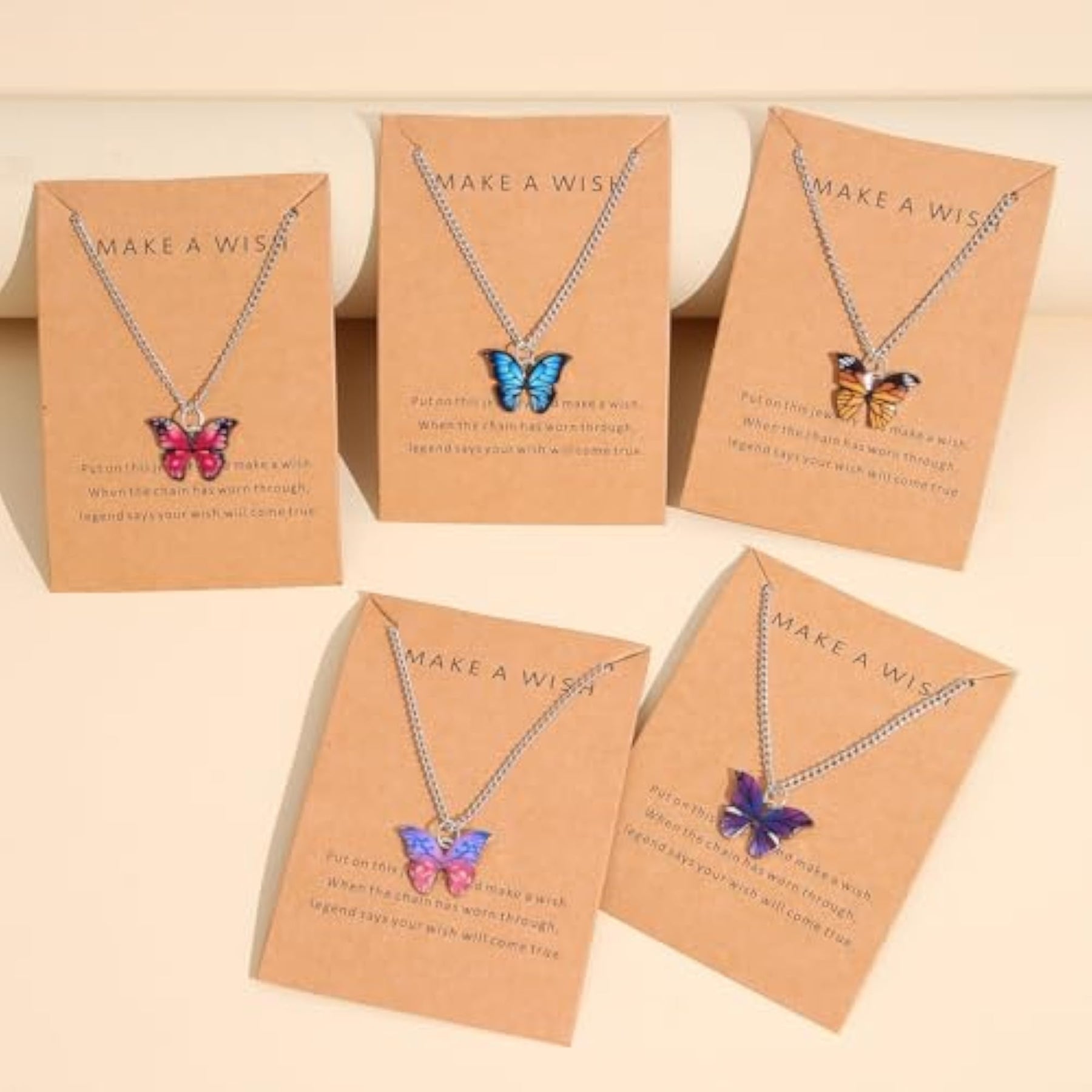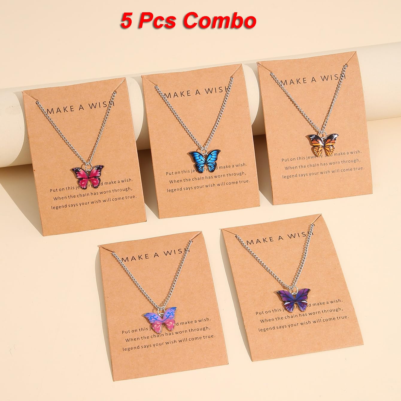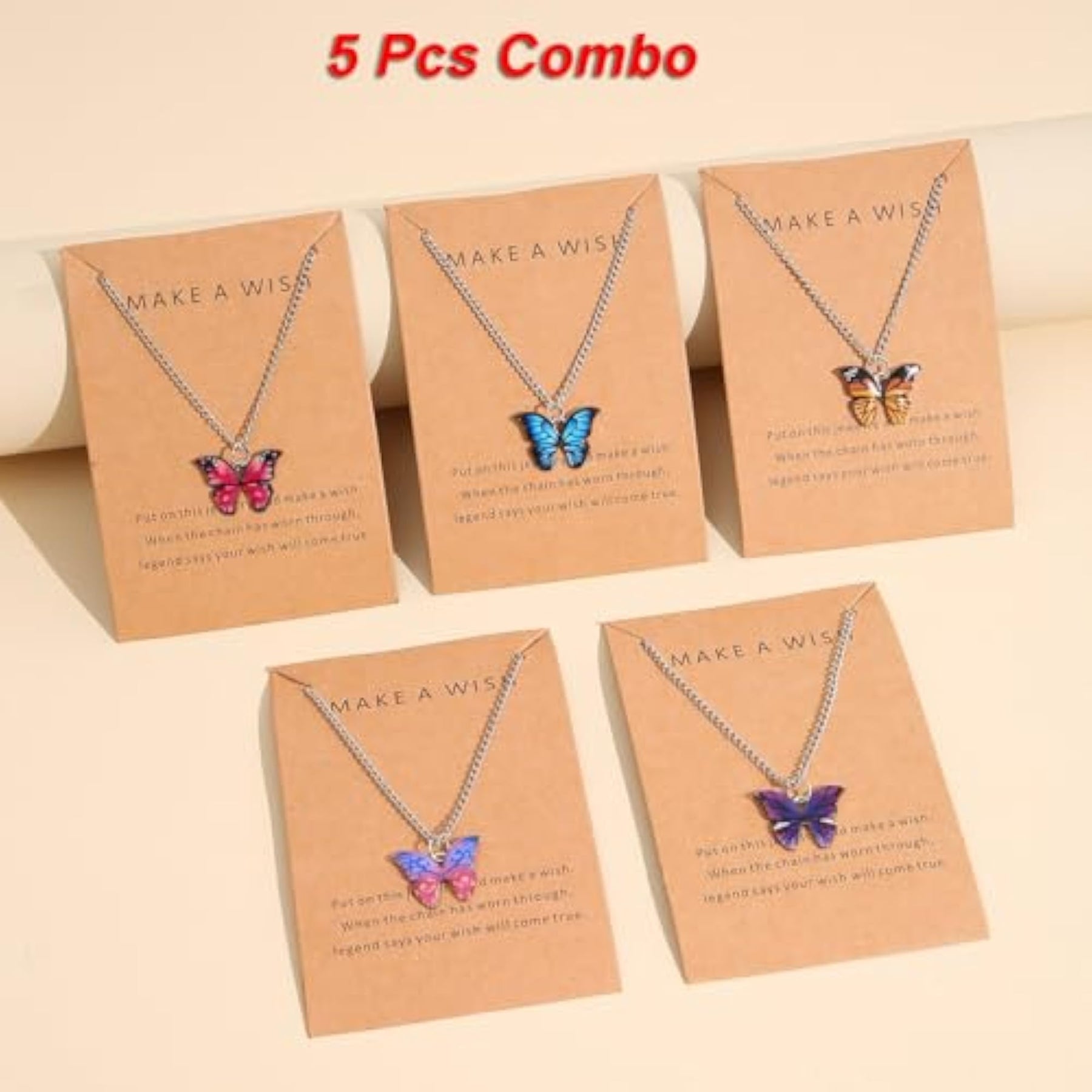5 Pcs Butterfly Necklace Set for Pendant Necklace (Silver)