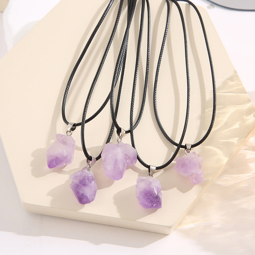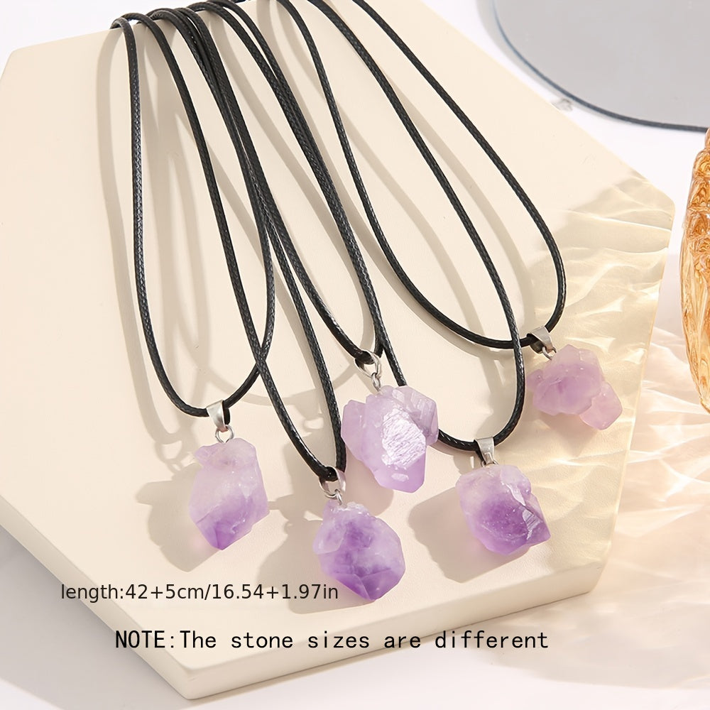 Elevate your style with this set of 5 stunning amethyst necklaces. Each necklace features a unique amethyst pendant that exudes elegance.