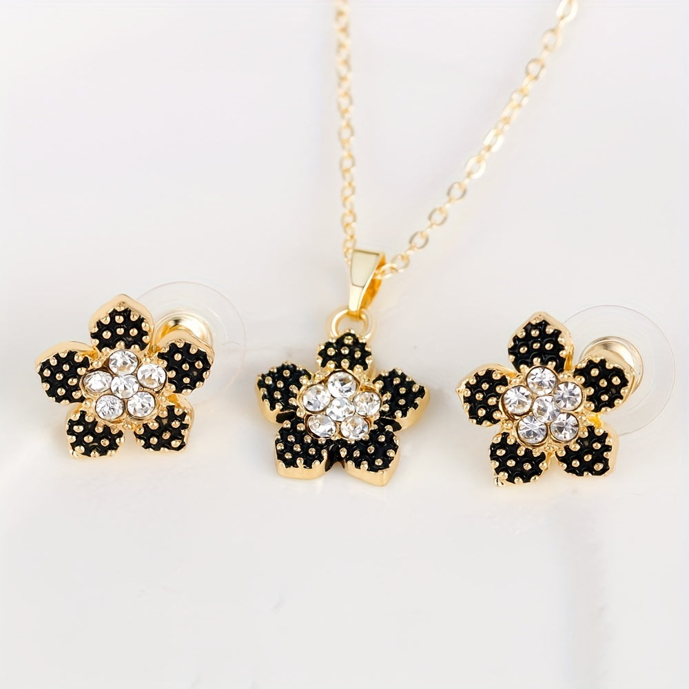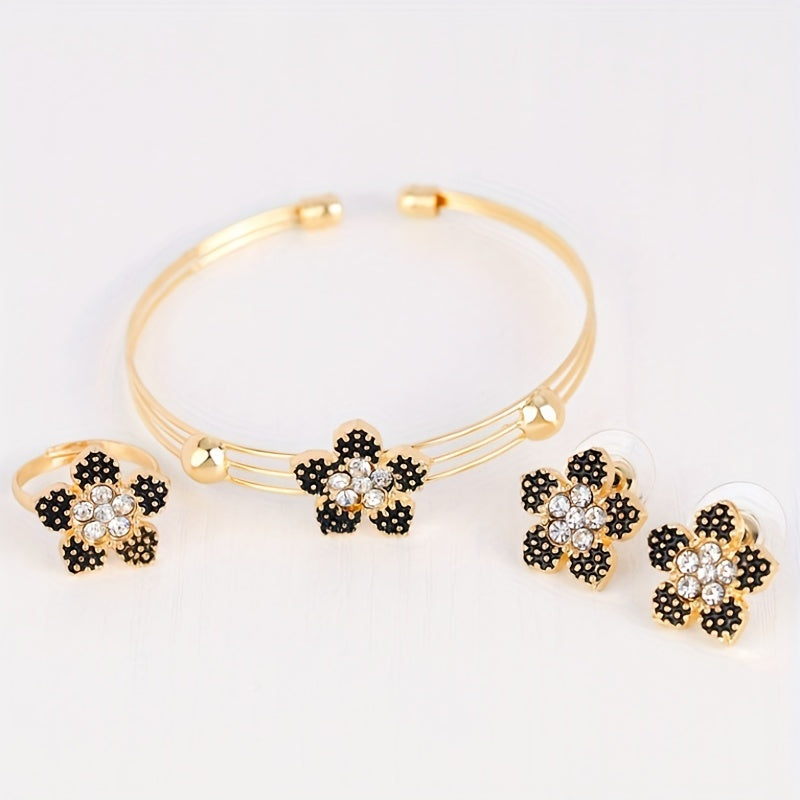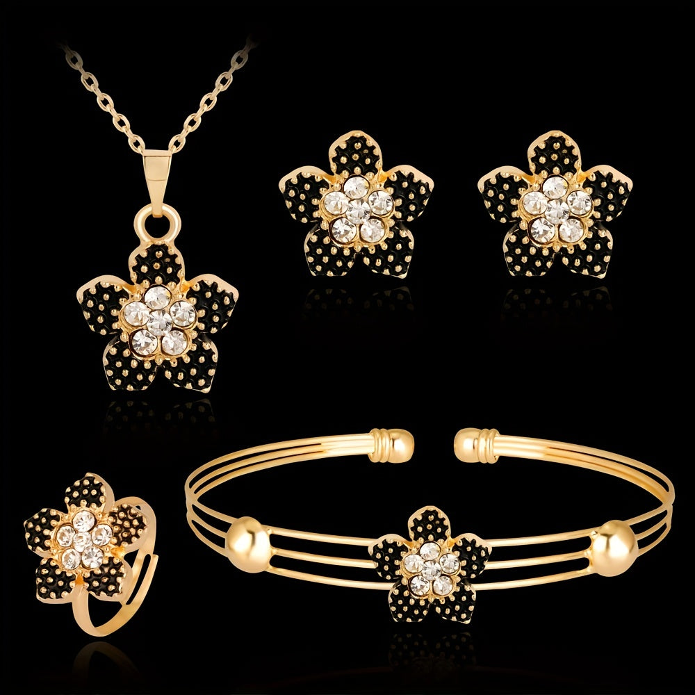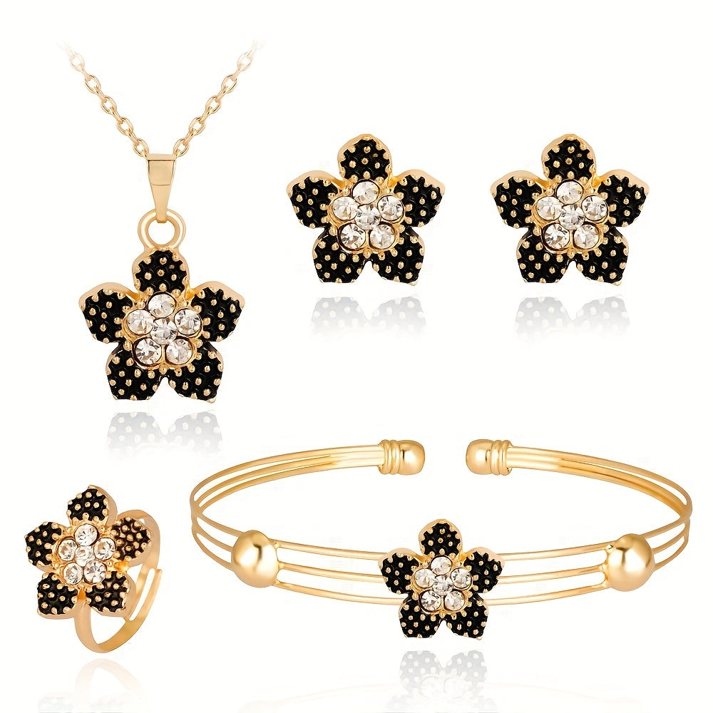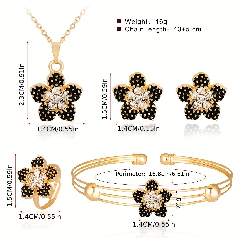 5pcs Golden Dark Flower Rhinestone Jewelry Set for Girls