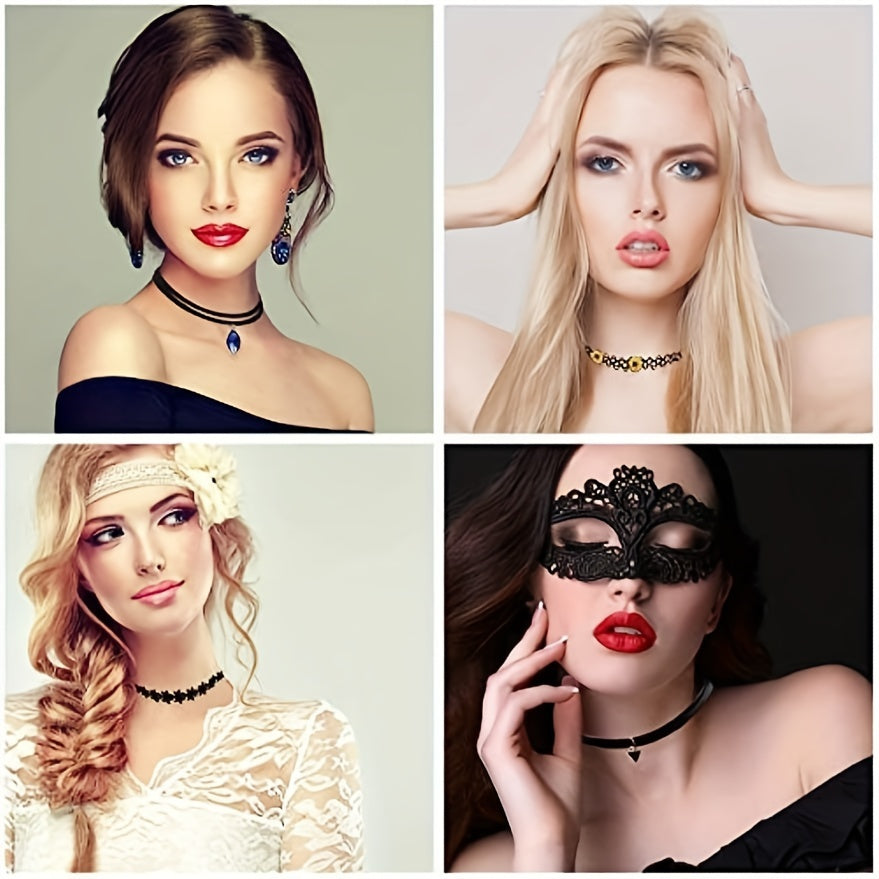 Add a touch of elegance to your outfit with this set of 5 choker necklaces. Made of high-quality velvet, lace, and stretch materials, these necklaces are perfect for everyday wear or special occasions.