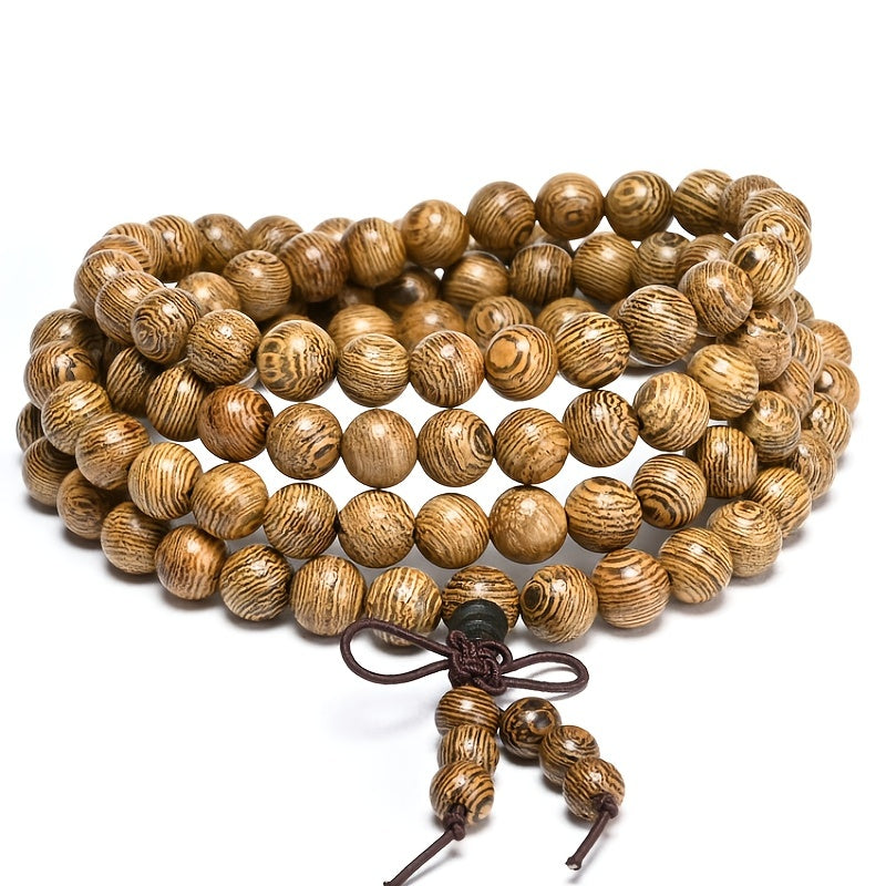 This beautiful bracelet features 108 floral pearl wooden beads, perfect for use as a Buddhist rosary or as a stylish necklace. Ideal for adding a touch of elegance to your outfit.