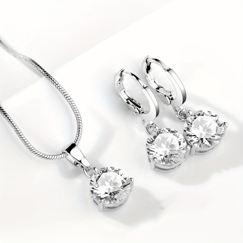 This two-piece set includes an 8mm zircon necklace and earrings in silver, perfect for men to wear on their wedding anniversary.