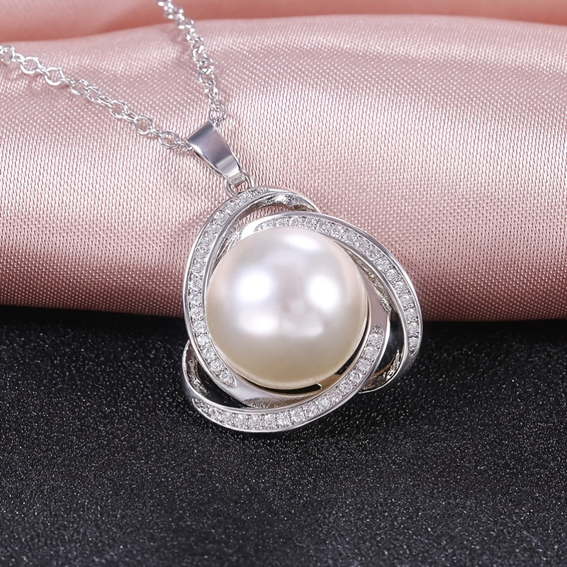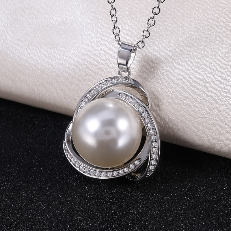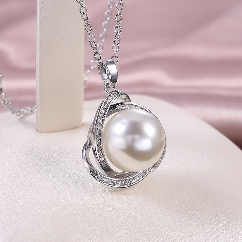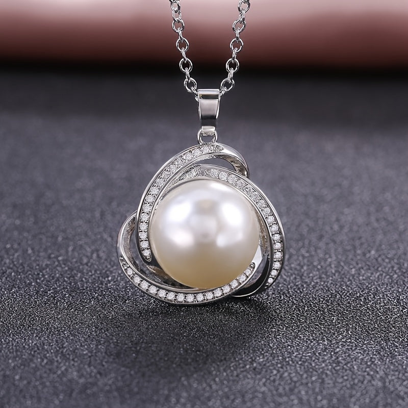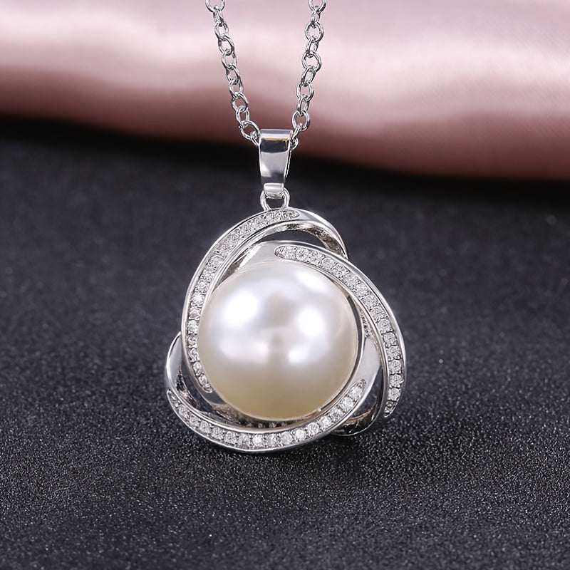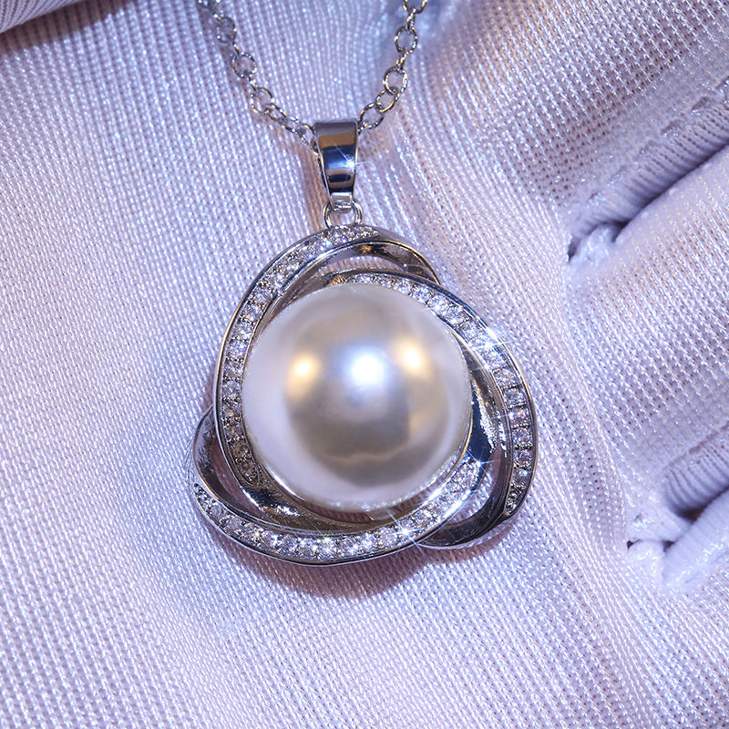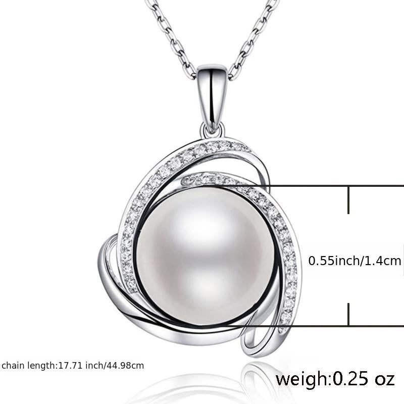 925 Silver Zircon Pearl Pendant Necklace for Women