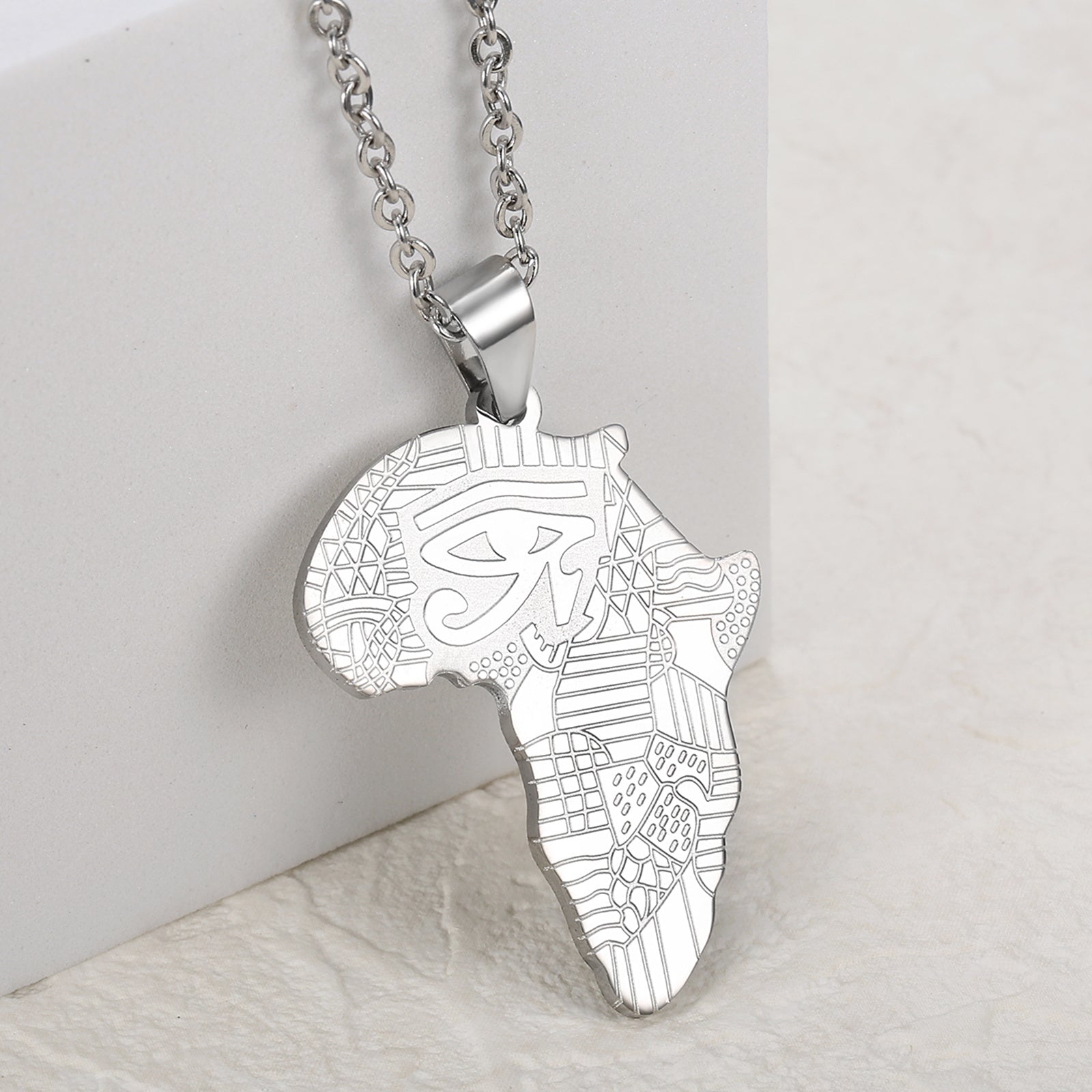 Stylish pendant necklace featuring the map of Africa for men. Perfect accessory for casual or formal wear.