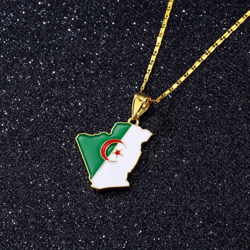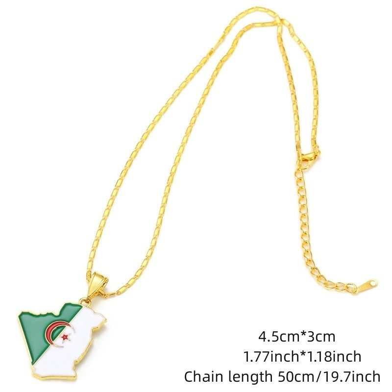Algeria Map Pendant Necklace Flag Drip Oil Necklace