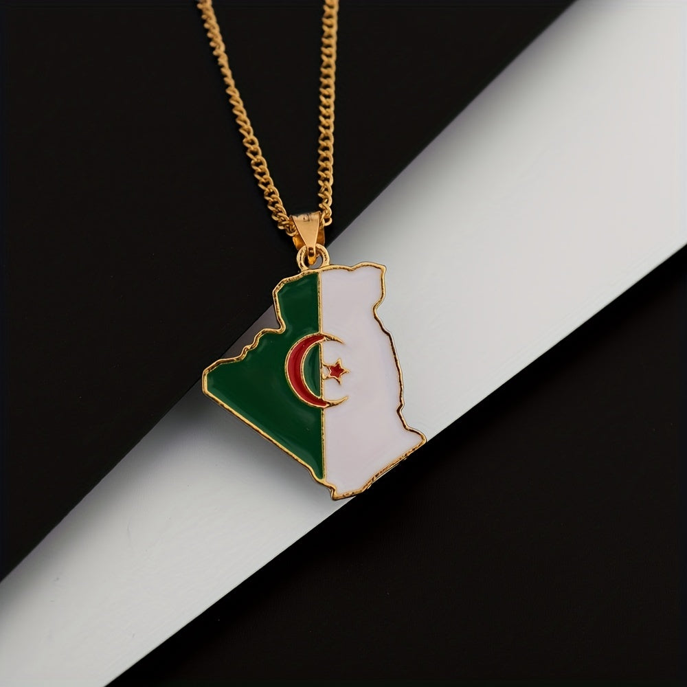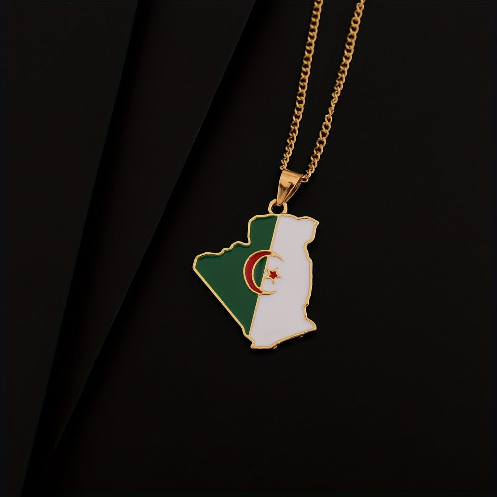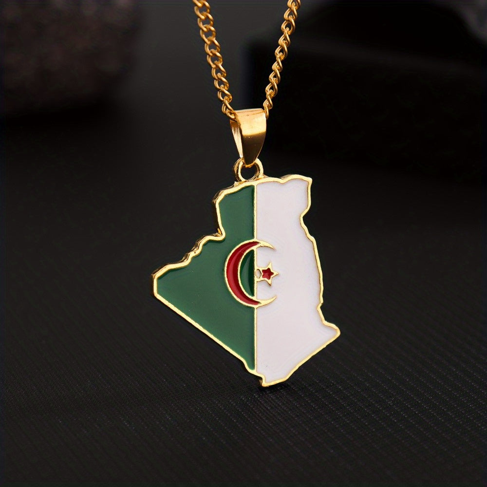 • Algeria map pendant necklace with flag design