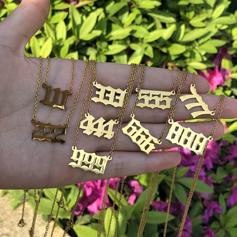 Angel Number Necklace 444 777 Stainless Steel Chain Pendant Goth Choker