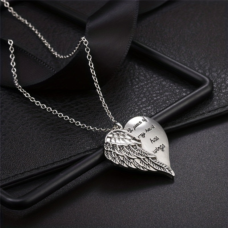 Show your love with this beautiful necklace featuring a heart with angel wings design.