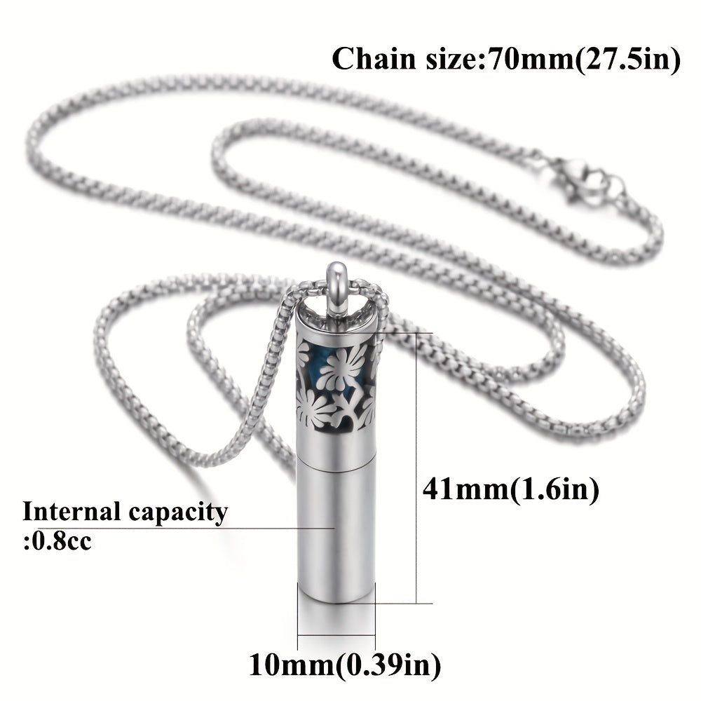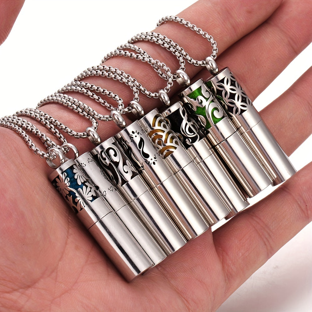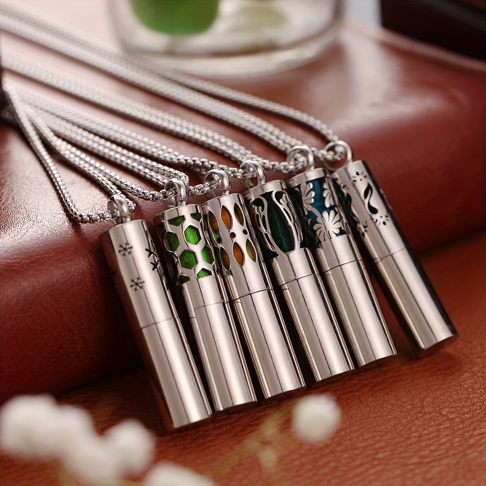 Elevate your style and mood with this stainless steel essential oil diffuser pendant necklace. Carry your favorite perfume oils in a stylish bottle necklace.