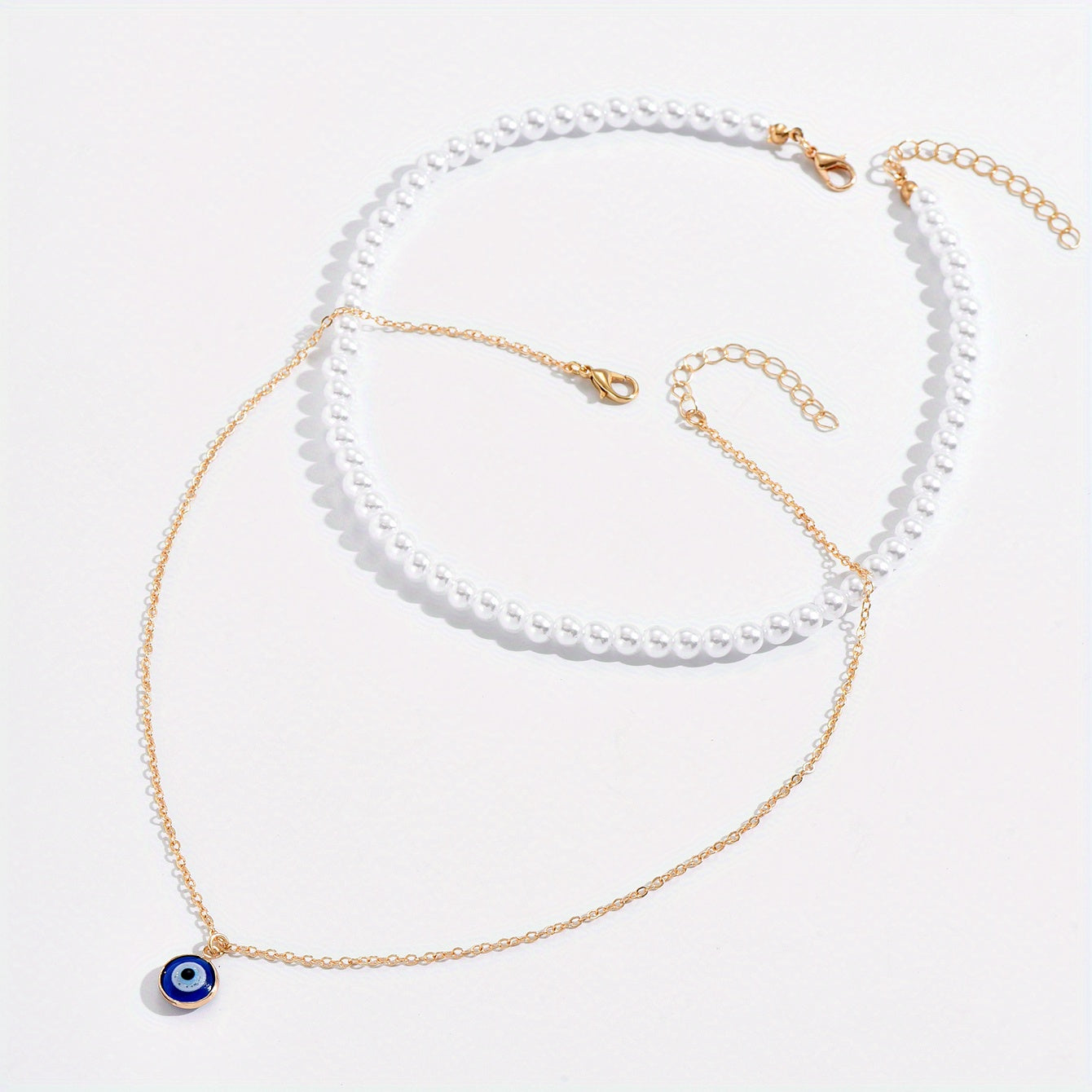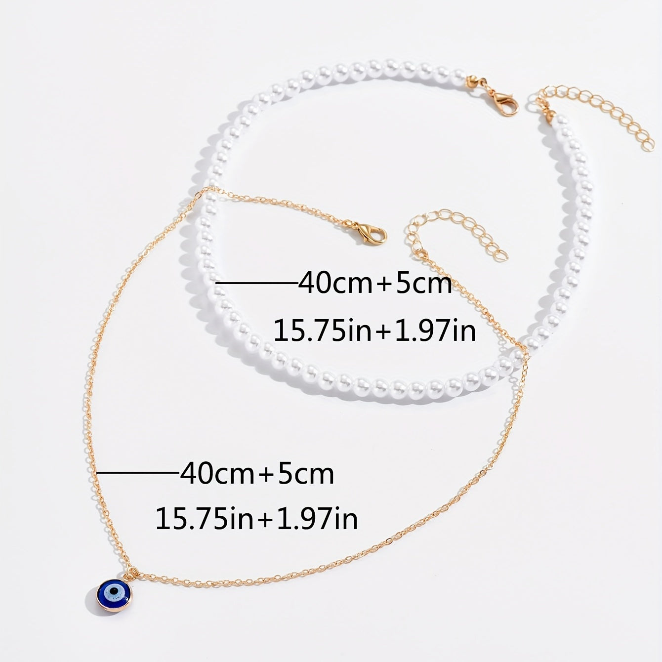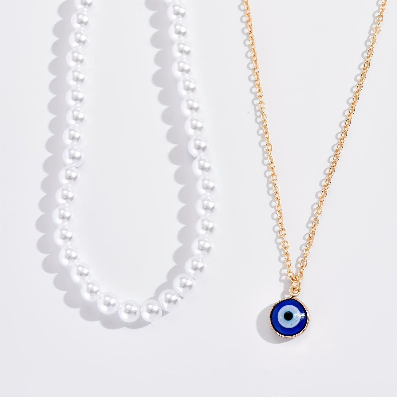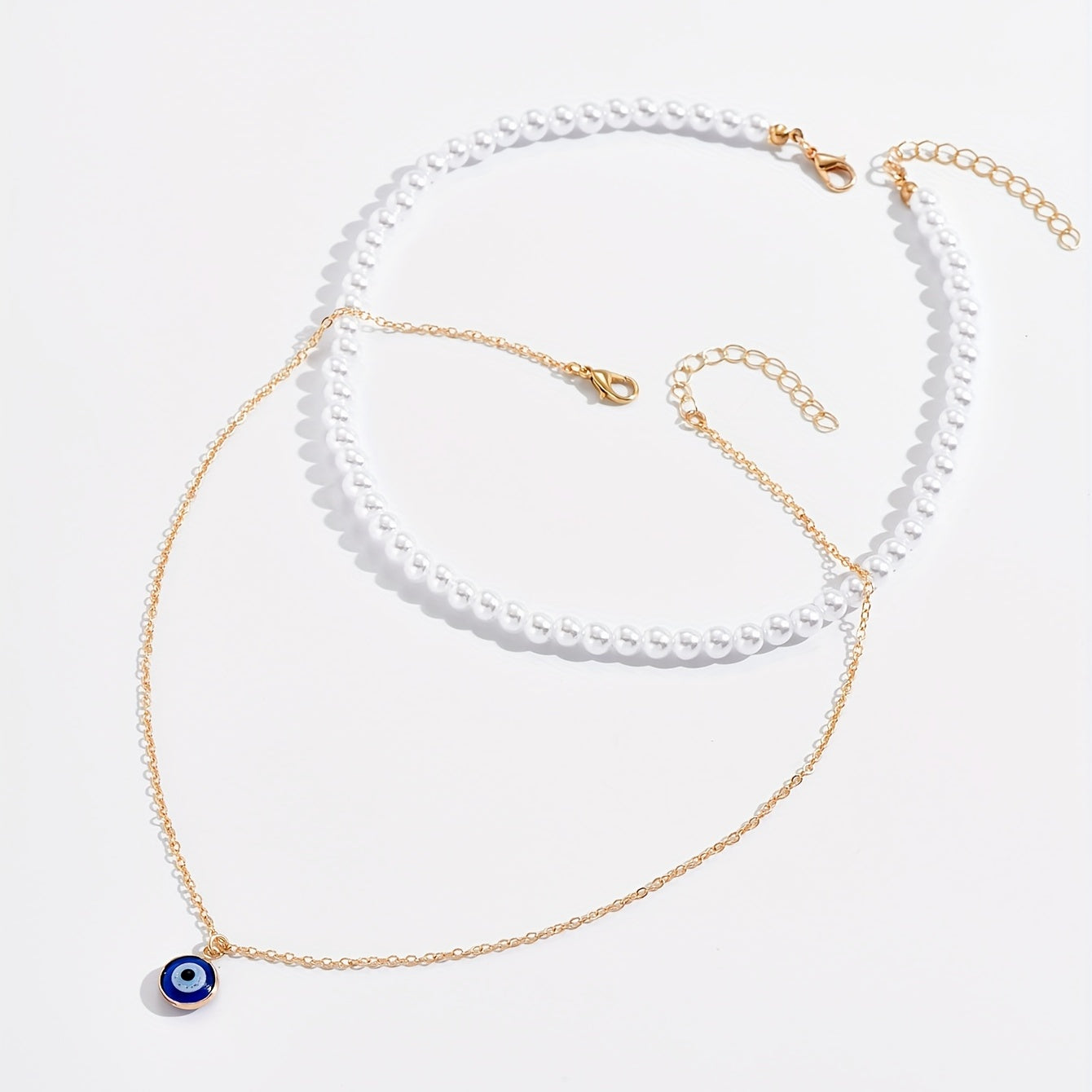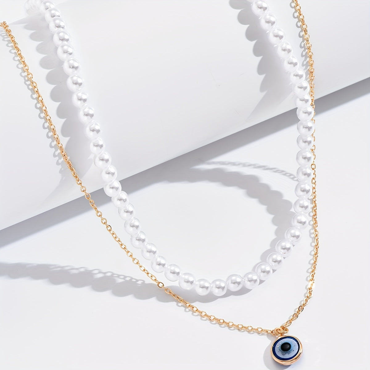 Bohemian Evil Eye Faux Pearl Necklace Collar
