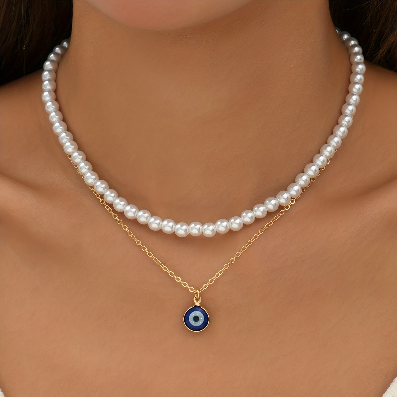 Add a touch of bohemian style to your outfit with this Evil Eye faux pearl necklace collar. Perfect as a gift or for your own jewelry collection.