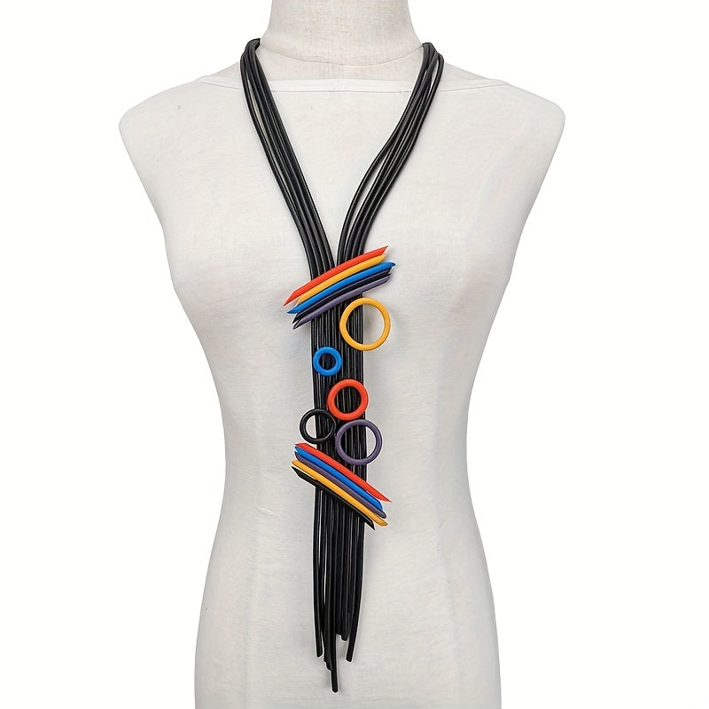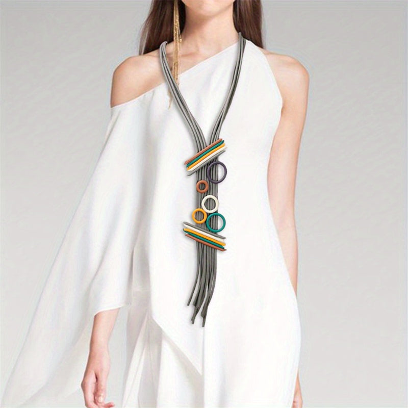 Bohemian Long Rubber Necklace Jewelry PU Leather Pendant Necklace