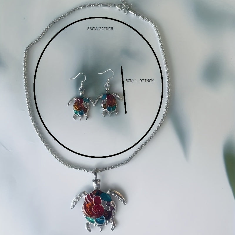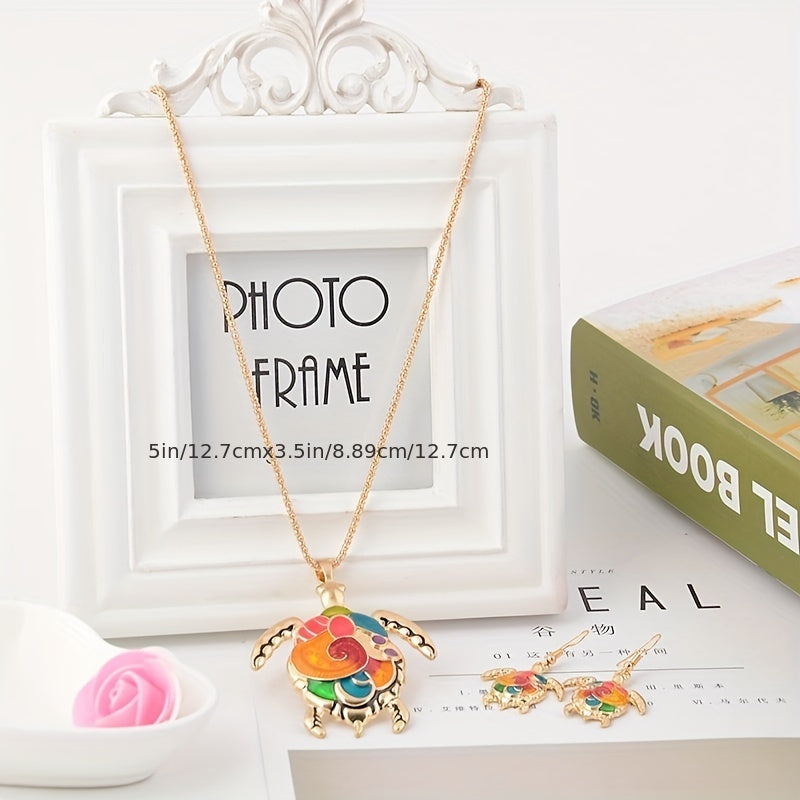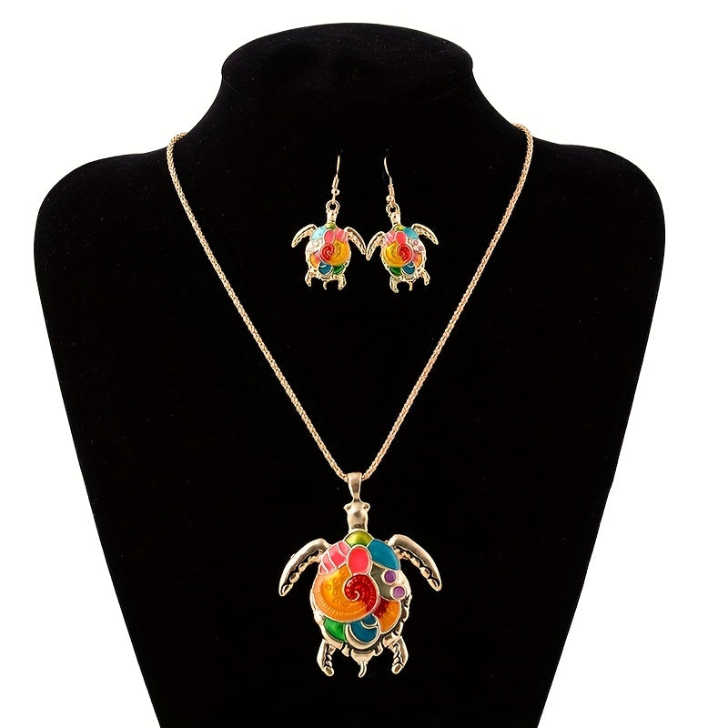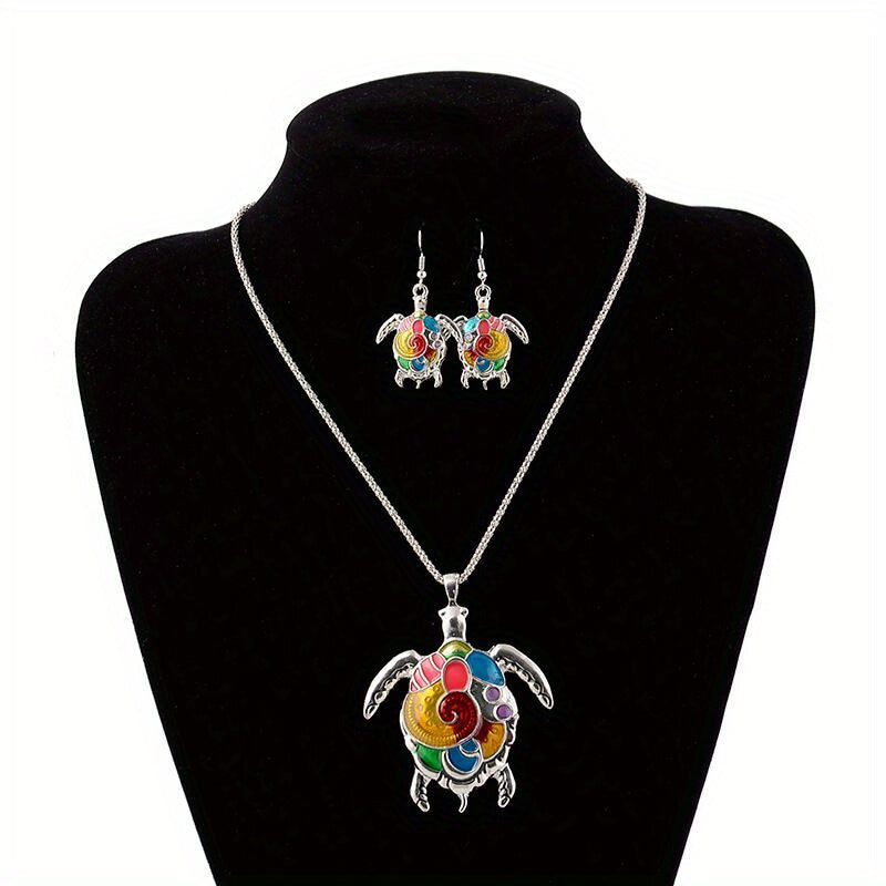 Elevate your summer look with this boho style jewelry set featuring a turtle pattern. Perfect for daily outfits or to add a touch of charm to your vacation ensemble.