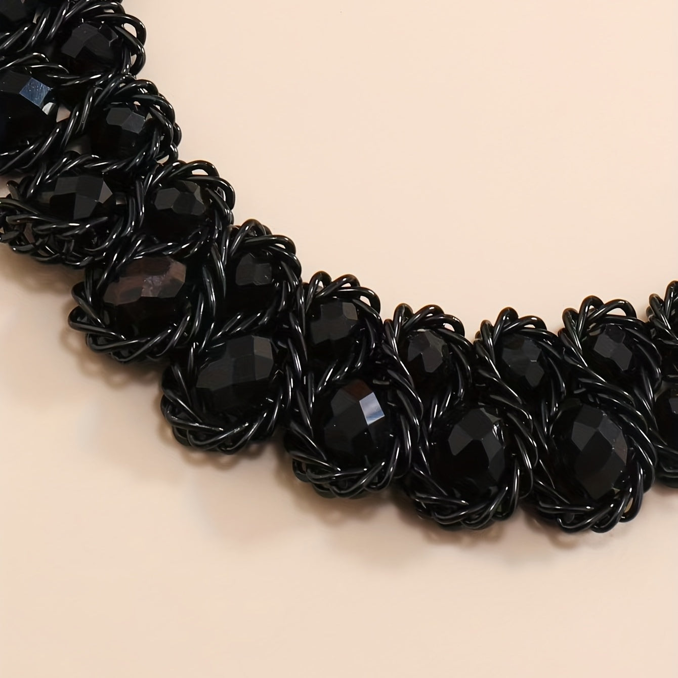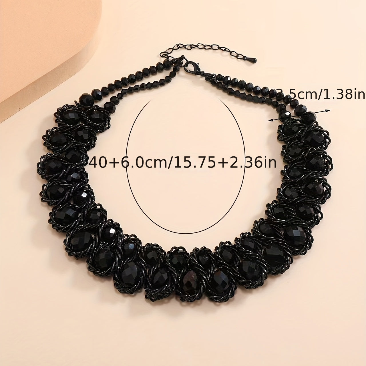 Elevate your neck jewelry game with this boho chic double row aluminum chain crystal beaded necklace.