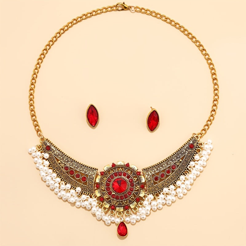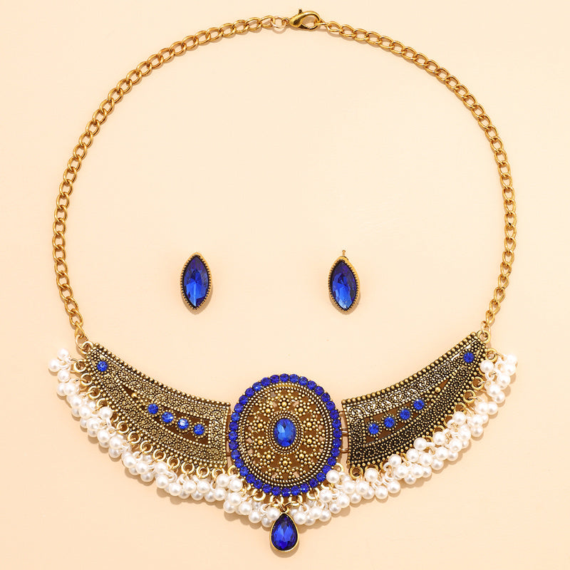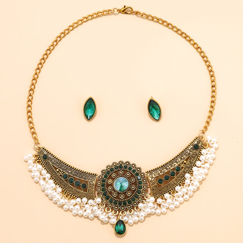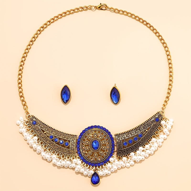 Elevate your style with this vintage zinc alloy jewelry set featuring a pendant necklace and stud earrings. Perfect for parties and prom, this set exudes personality and boho charm.