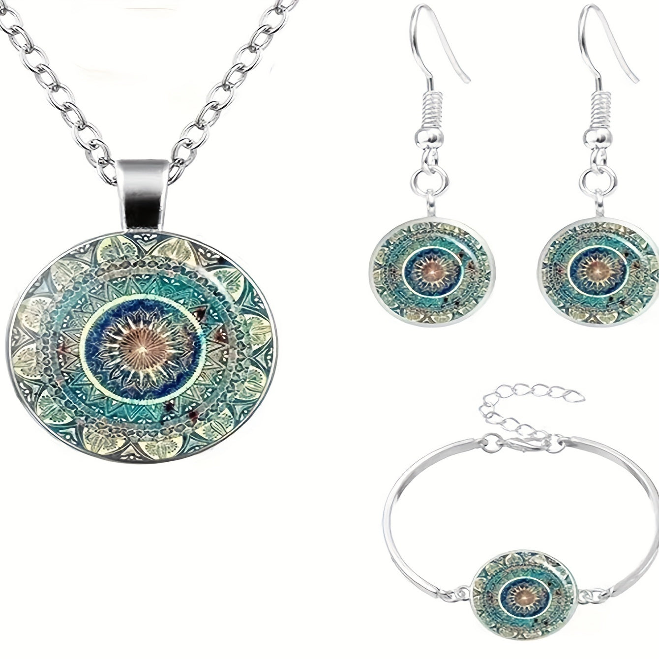 Enhance your look with this 4-piece jewelry set featuring earrings, necklace, and bracelet. The silver-plated design with time gemstone accents adds elegance to your daily outfits or party ensembles.