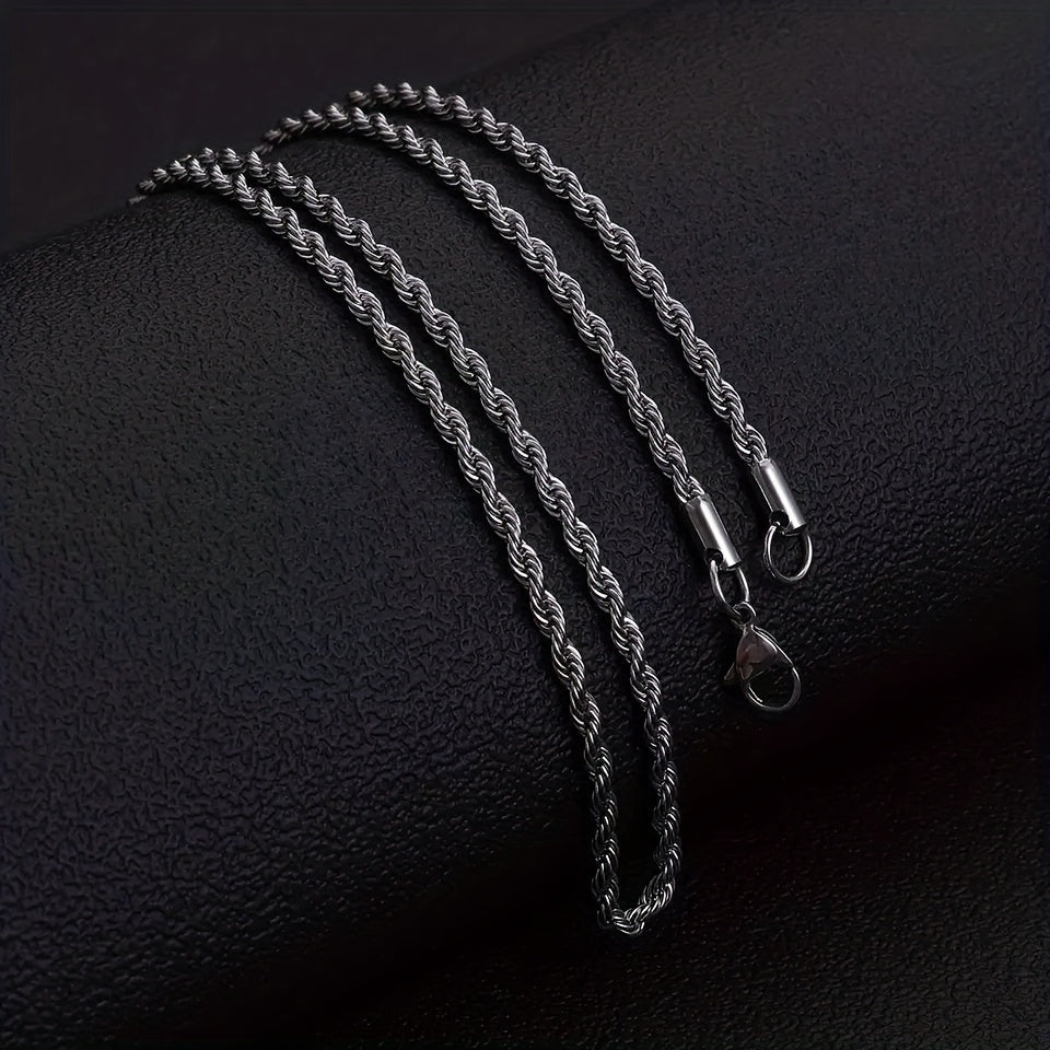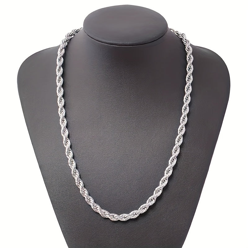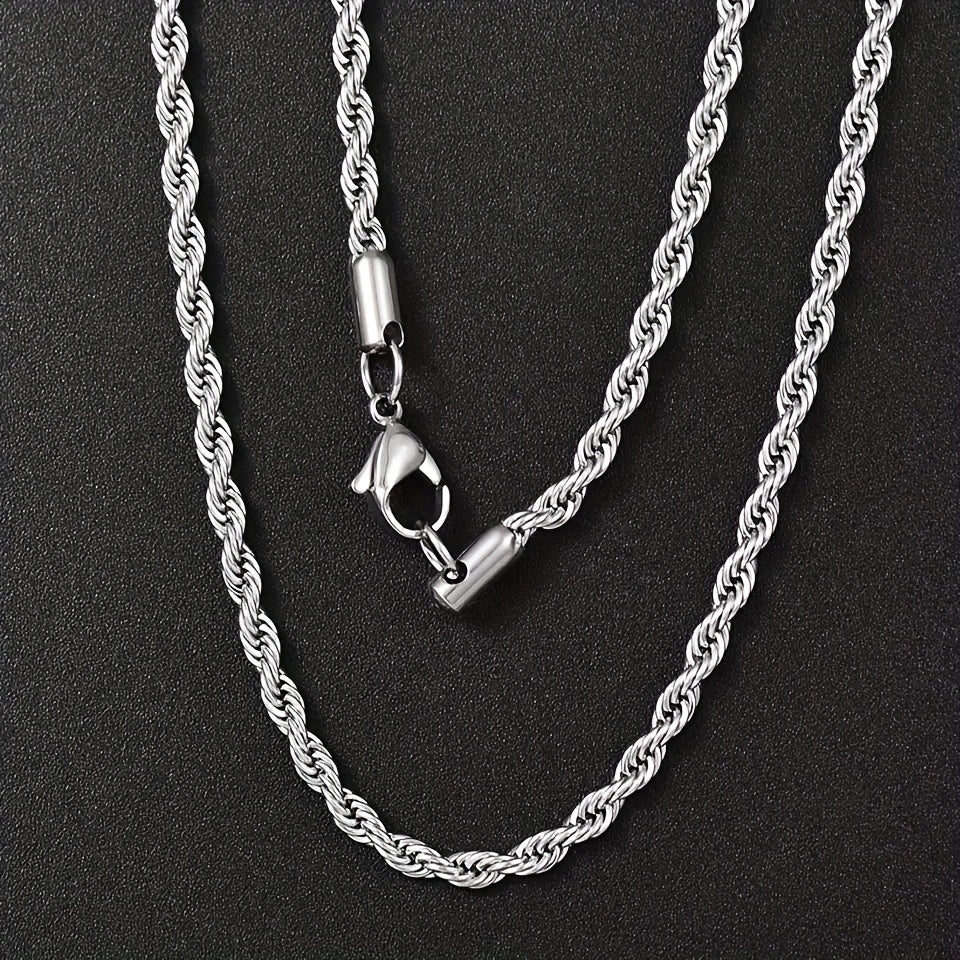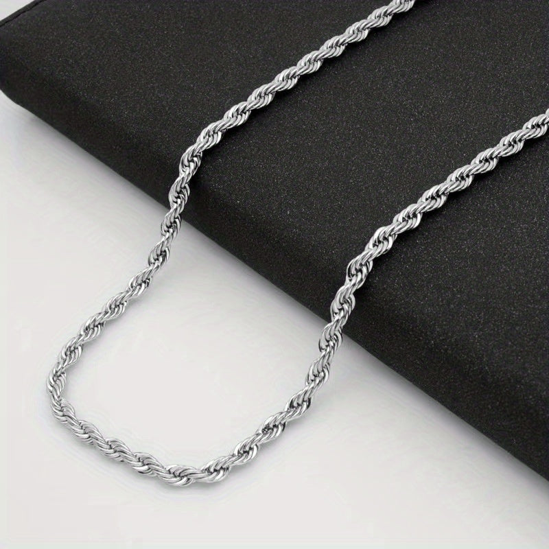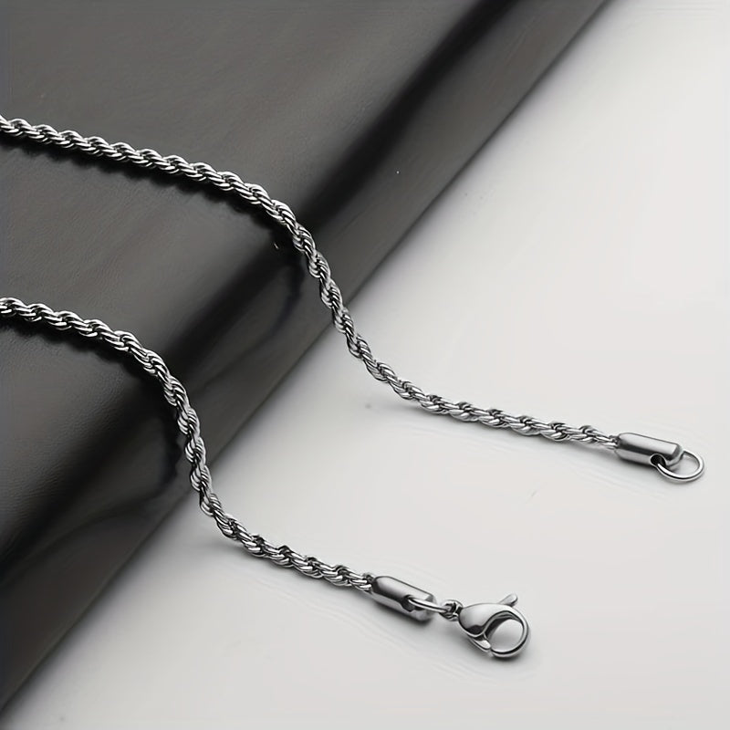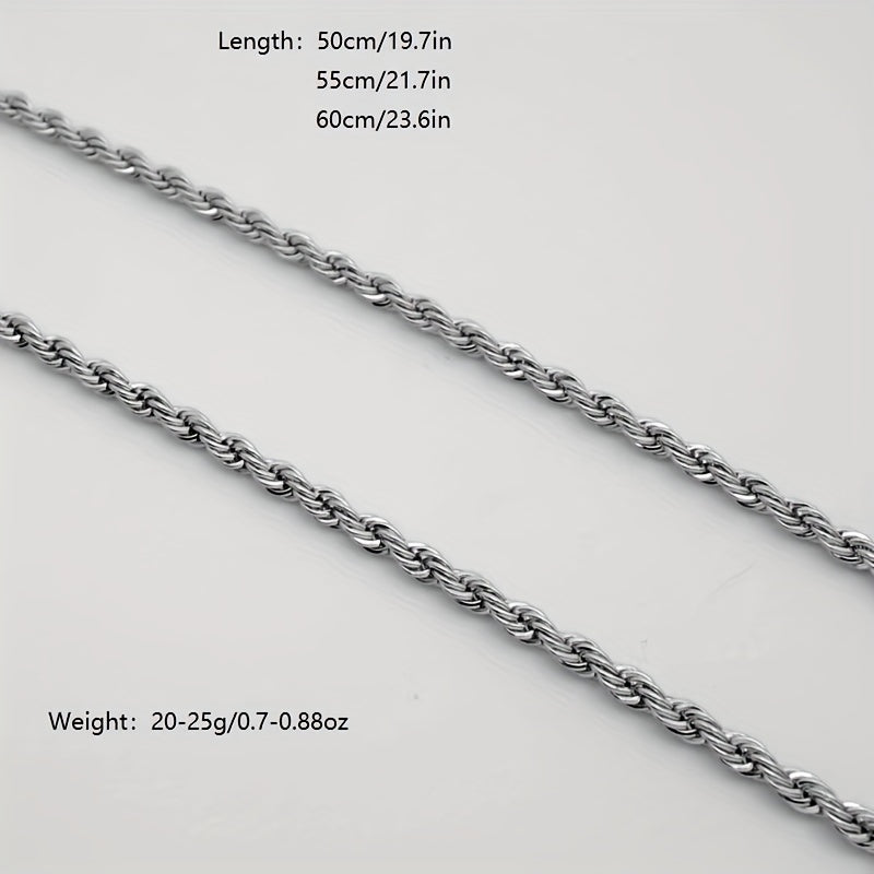 This stainless steel necklace features a plain twist design suitable for boys. Available in different sizes - 50cm to 59cm.