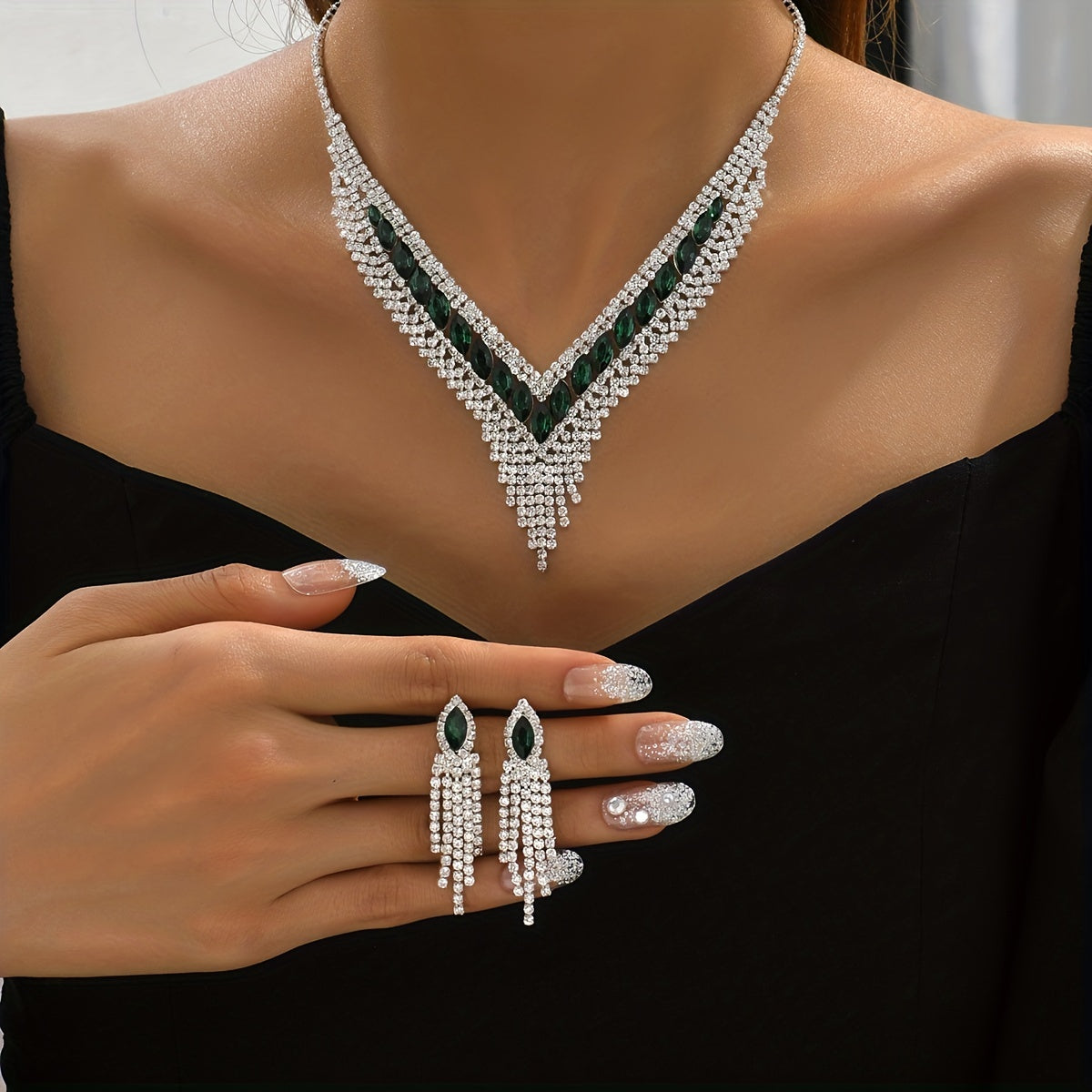Bridal Zircon Necklace Set with Pendant & Earrings