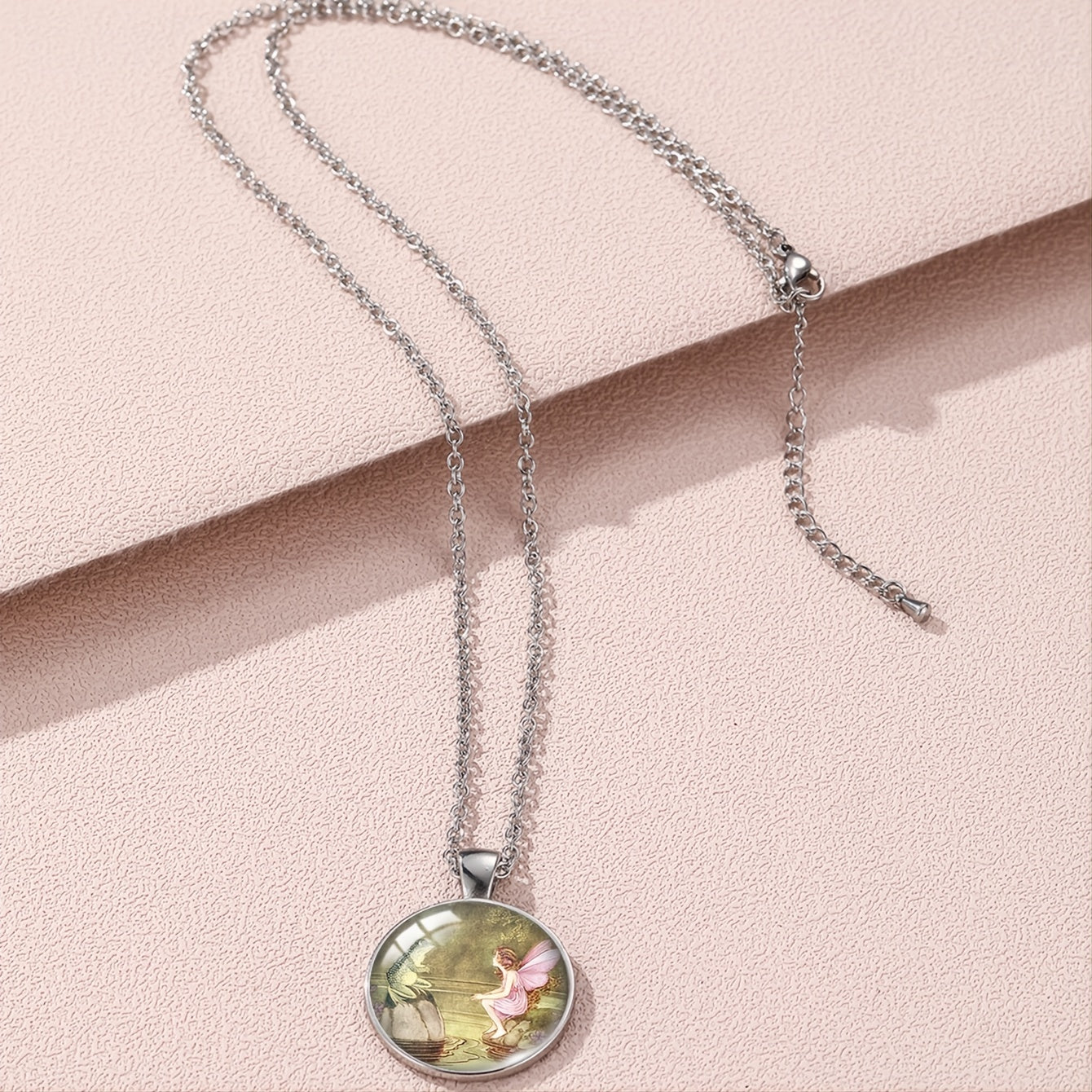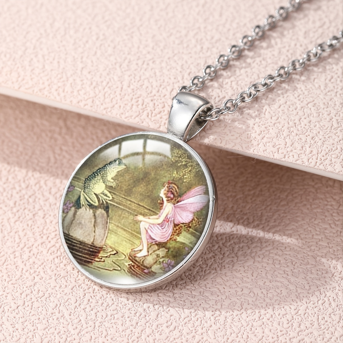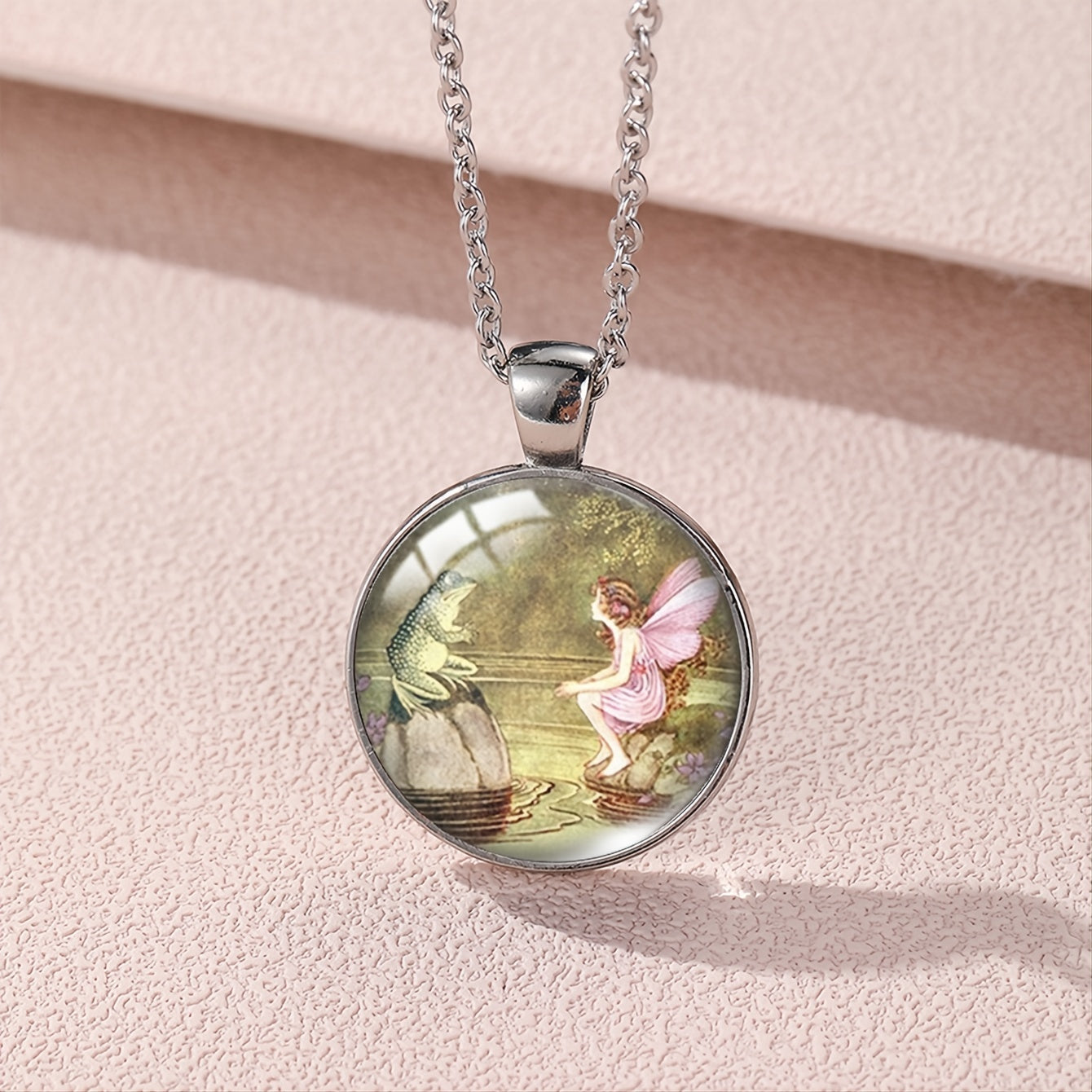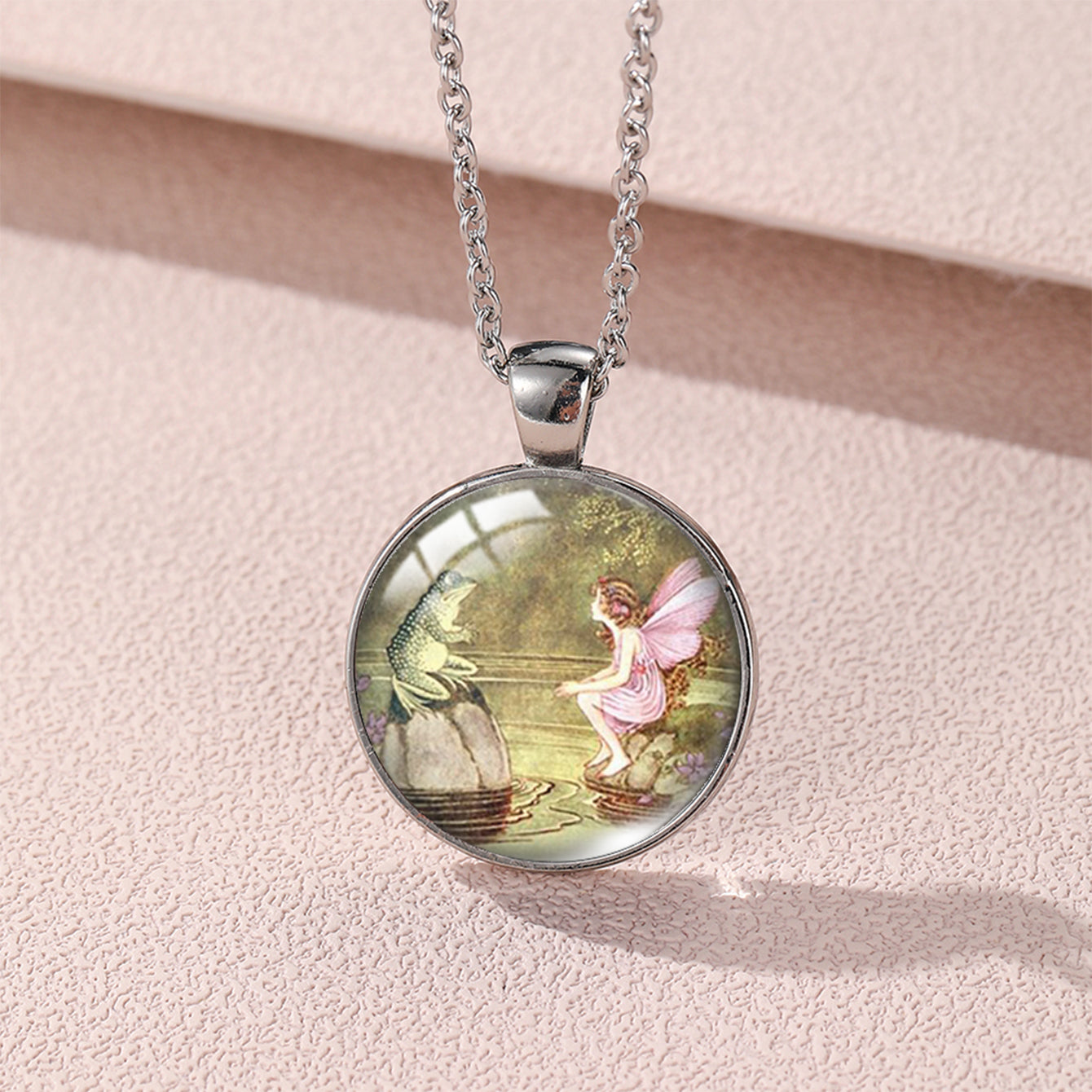 Beautiful pendant necklace featuring a bronze frog and fairy design, perfect for mythology lovers.