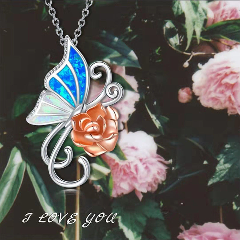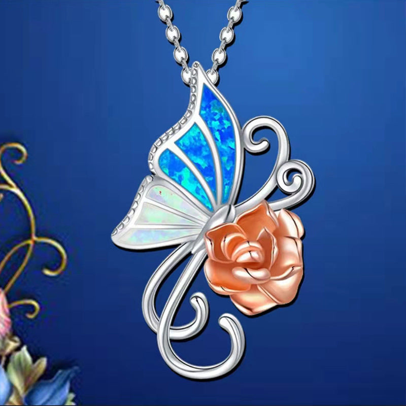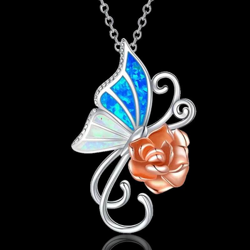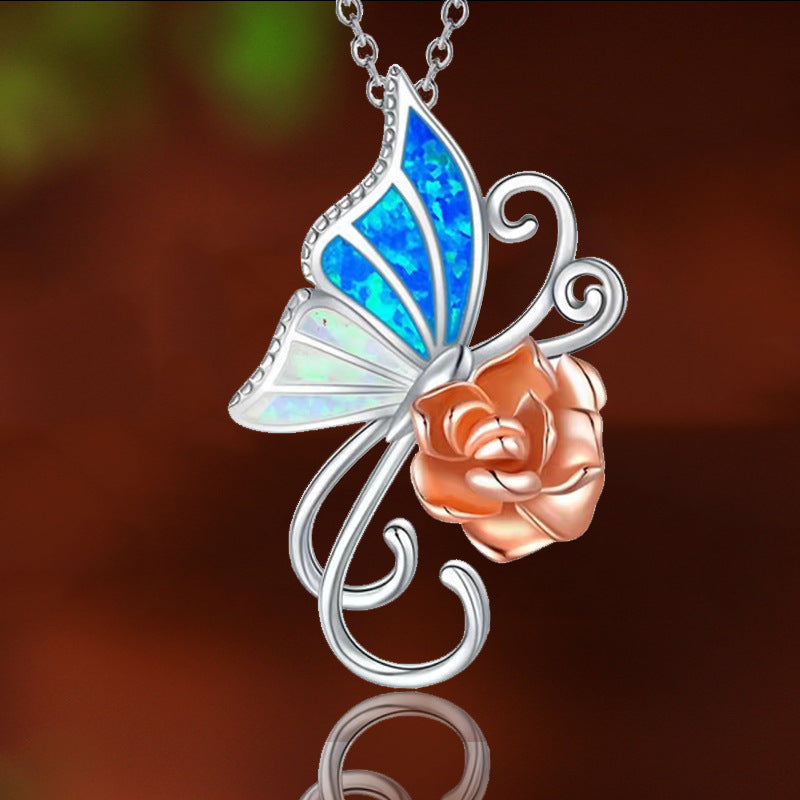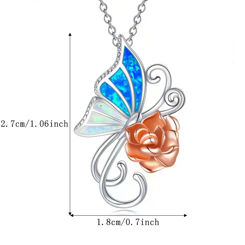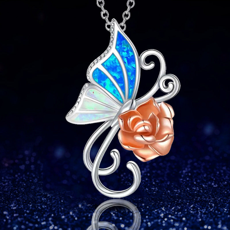 Butterfly Rose Pendant Necklace Jewelry for Men Women