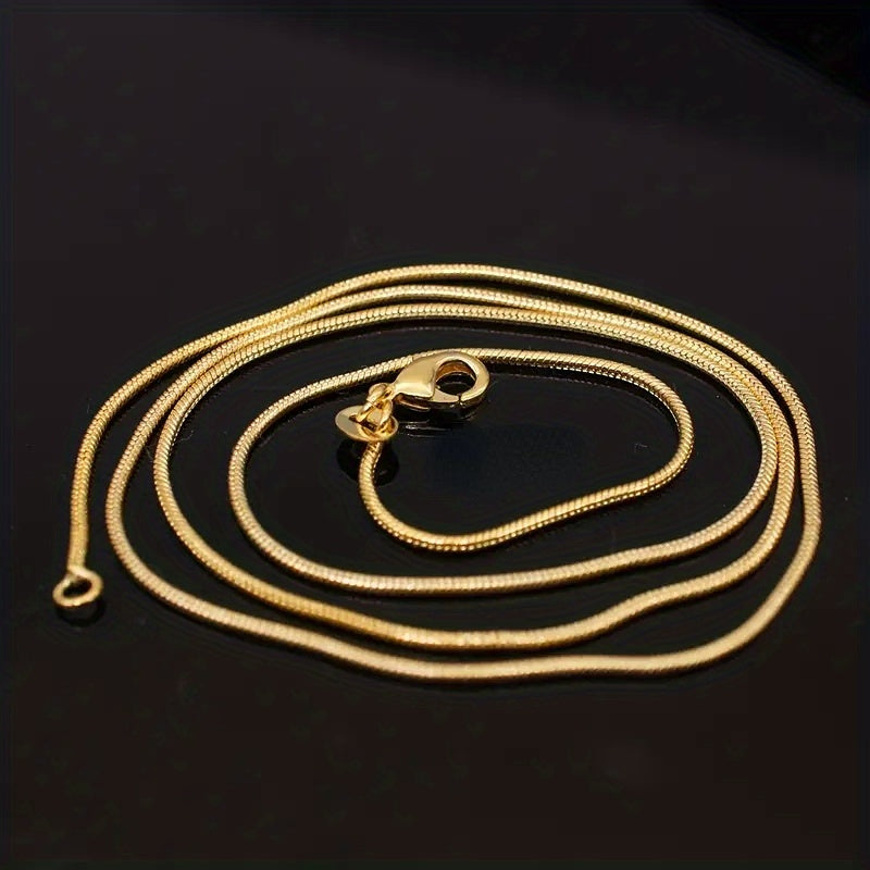 This classic snake chain necklace is perfect for both men and women. Available in golden and silver colors, it features a 1mm width and is ideal for everyday wear. Choose from sizes 18-30 inches.