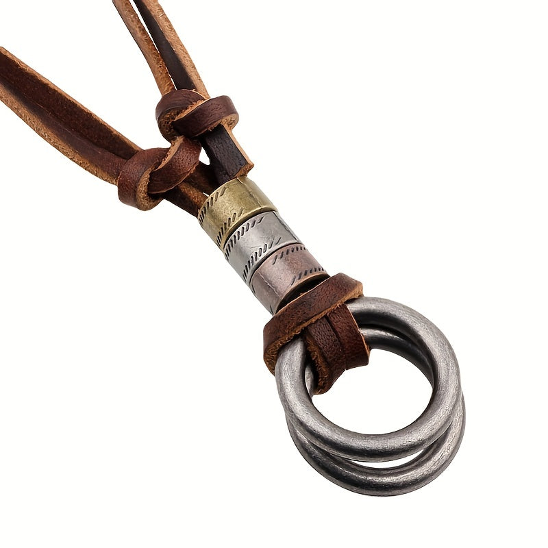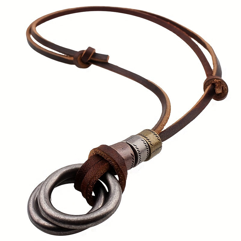 Elevate your style with this set of two cowhide leather men's necklaces. Perfect for casual or formal wear.