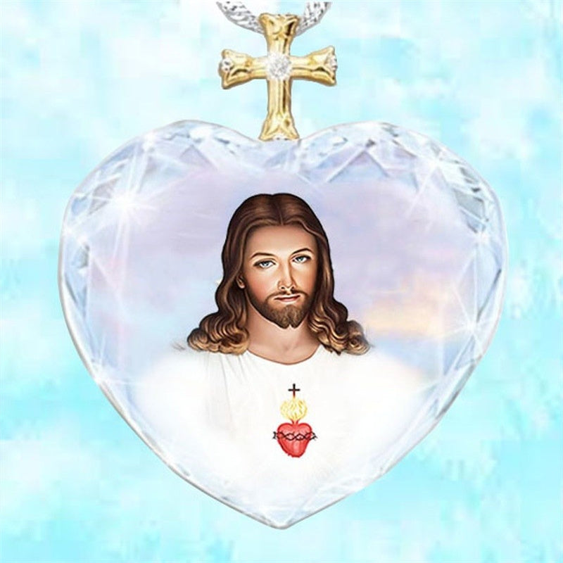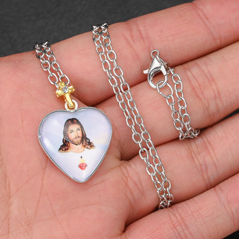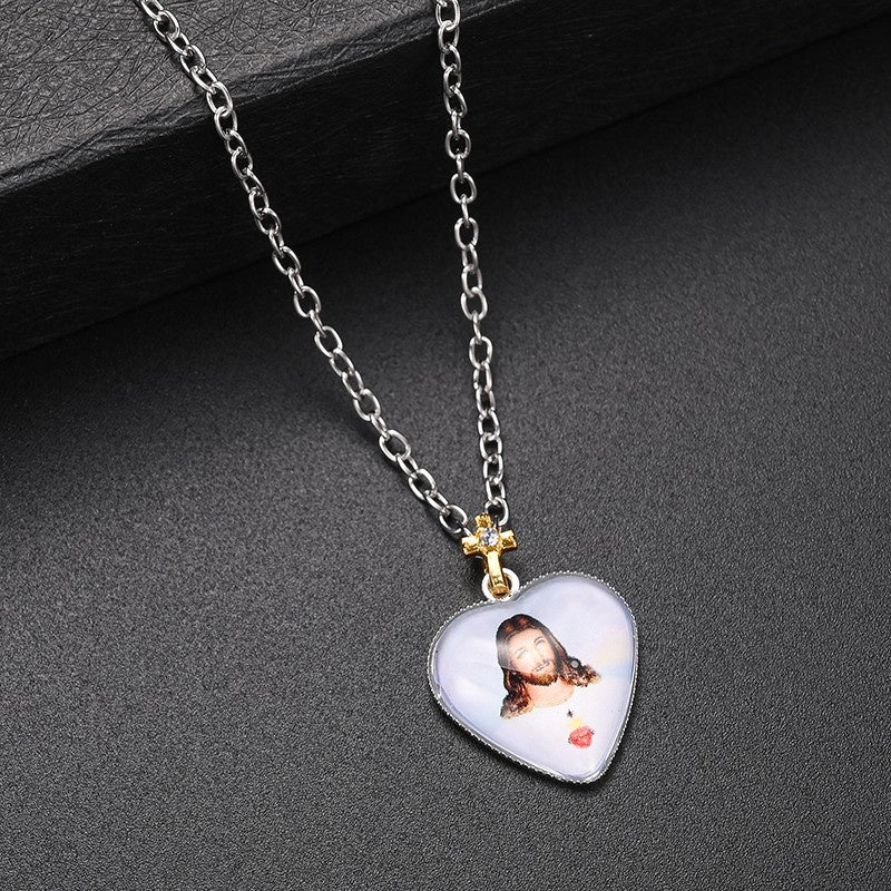 This pendant necklace features a picture of Jesus Christ on a cross and heart design, making it a meaningful piece of religious jewelry for men.