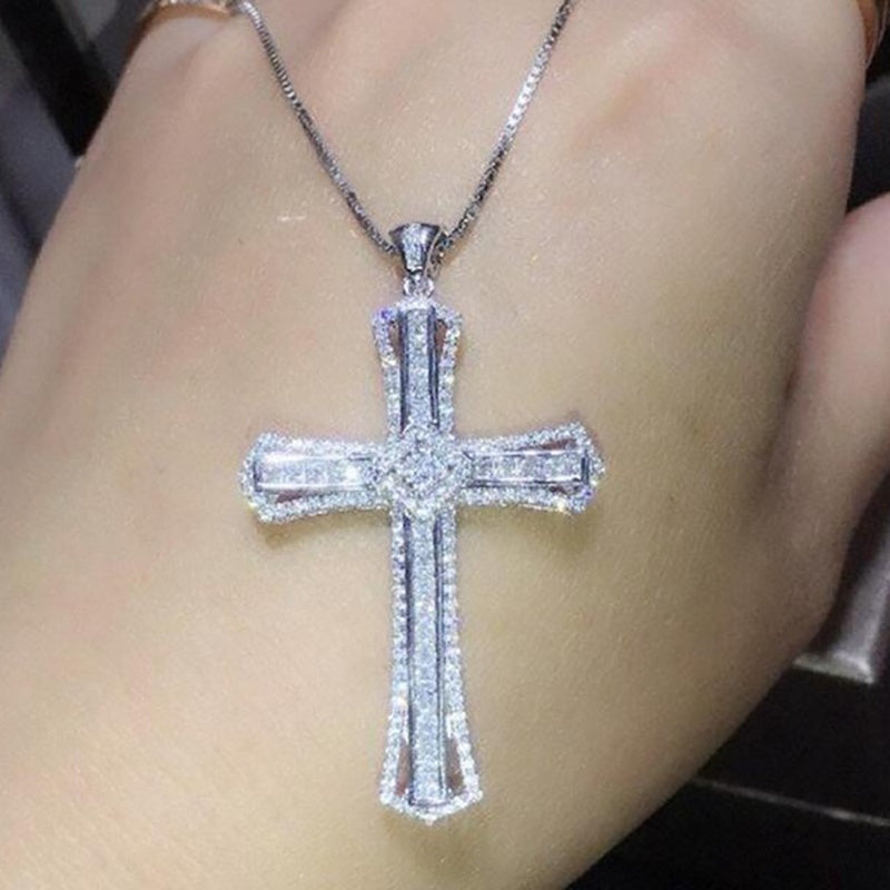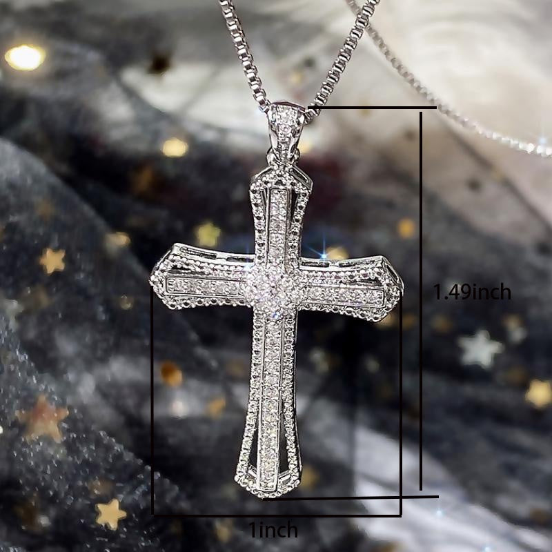 This stunning necklace features a cross-shaped pendant paved with sparkling zircon stones, perfect for parties and special occasions.