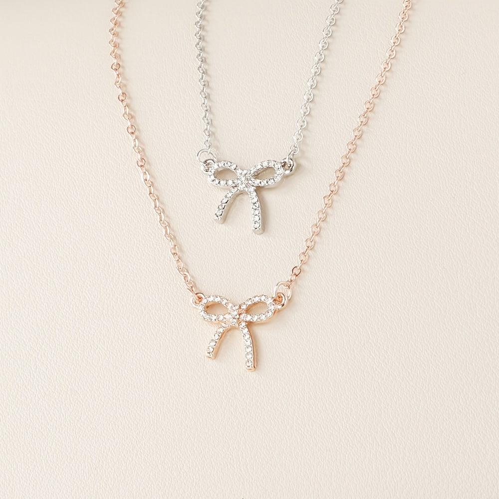 Add a touch of elegance to your outfit with this crystal bow necklace. Perfect for weddings, parties, or everyday wear.