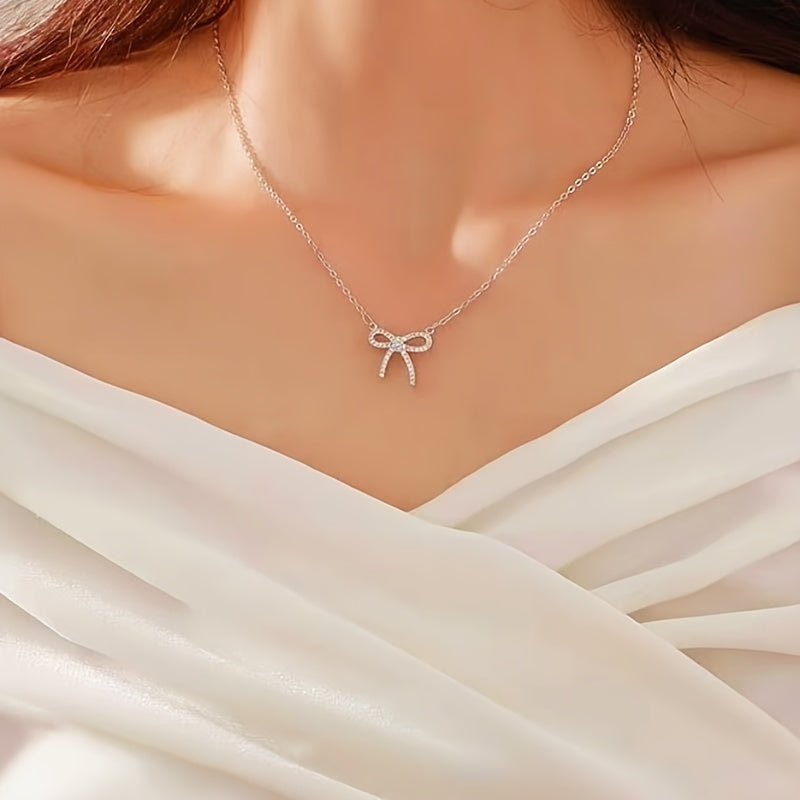 Crystal Bow Necklace Wedding Party Jewelry Dainty Clavicle Chain