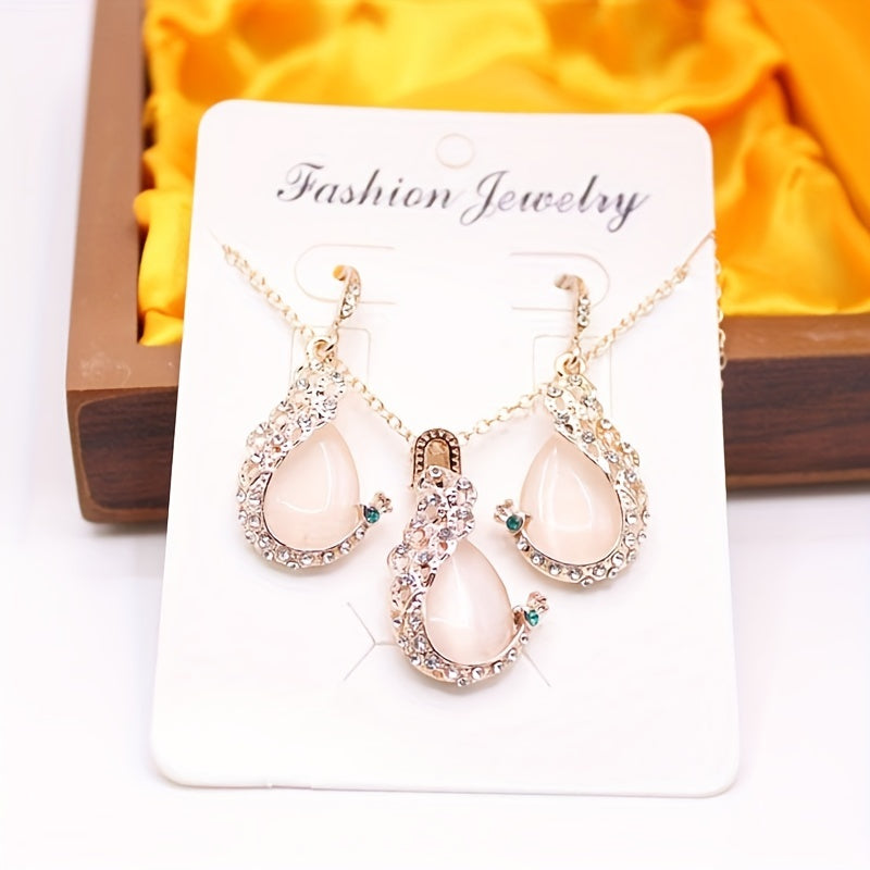 This exquisite set features delicate crystal peacock design, perfect for weddings or special occasions. A fine jewelry choice for women and girls.