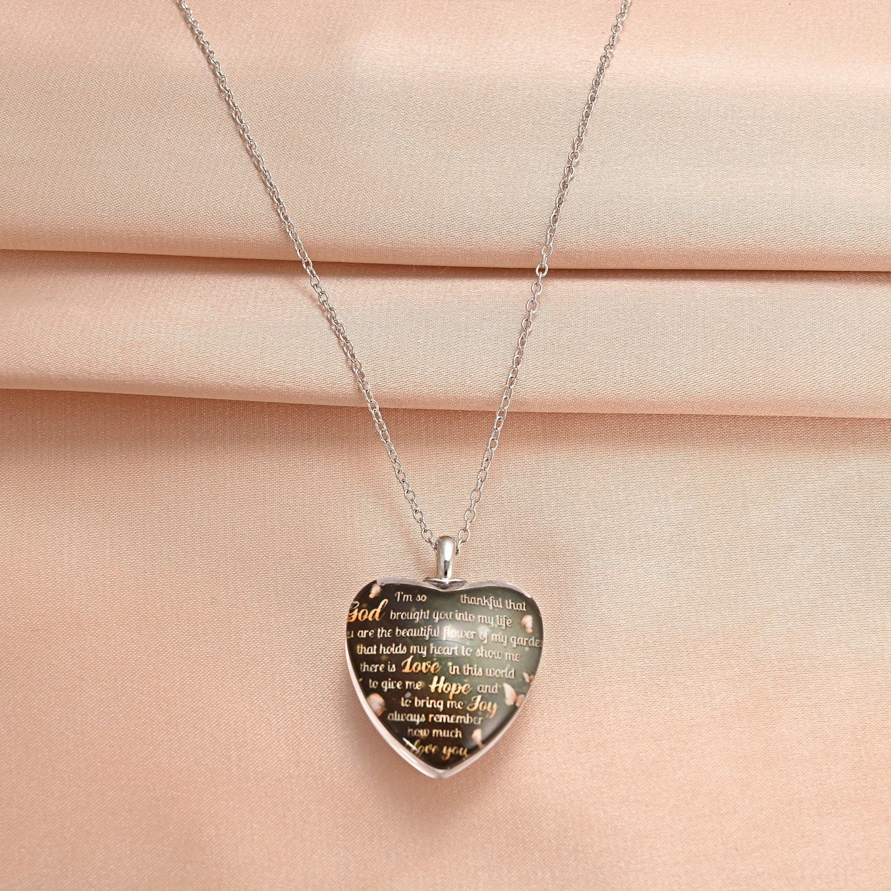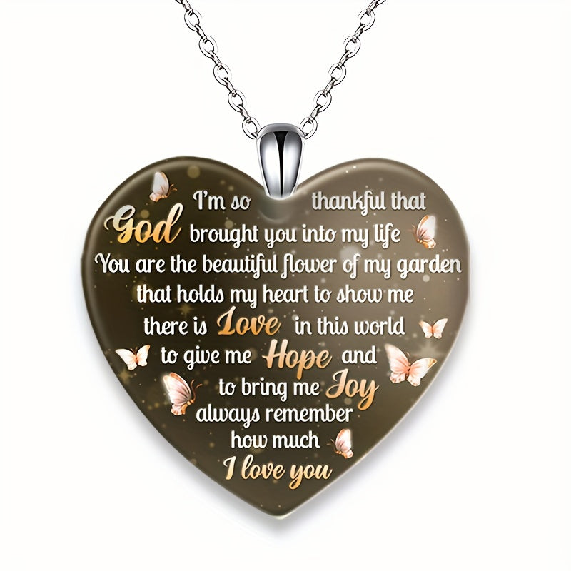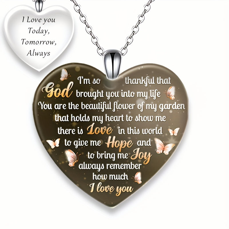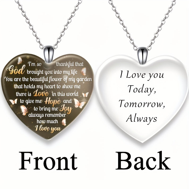 This heart shaped crystal pendant necklace features an alphabet print, making it a perfect accessory for Christmas banquets, holiday parties, or anniversaries.