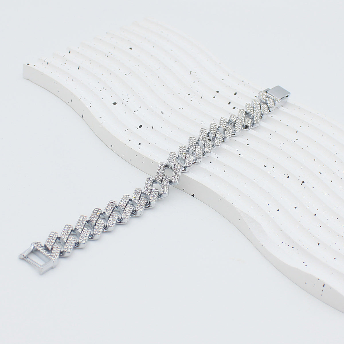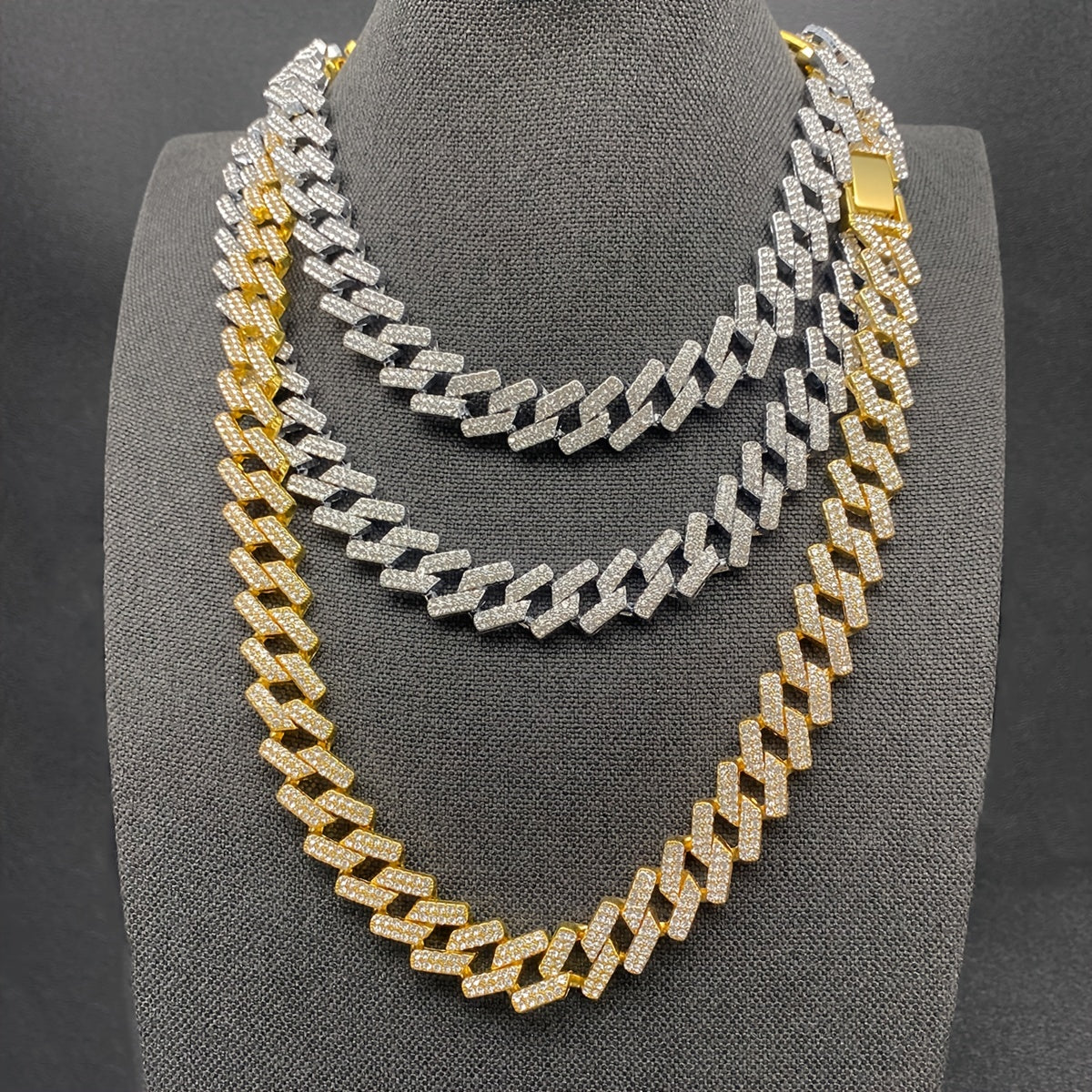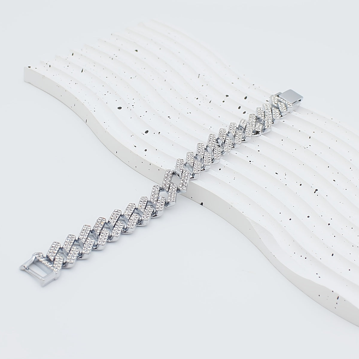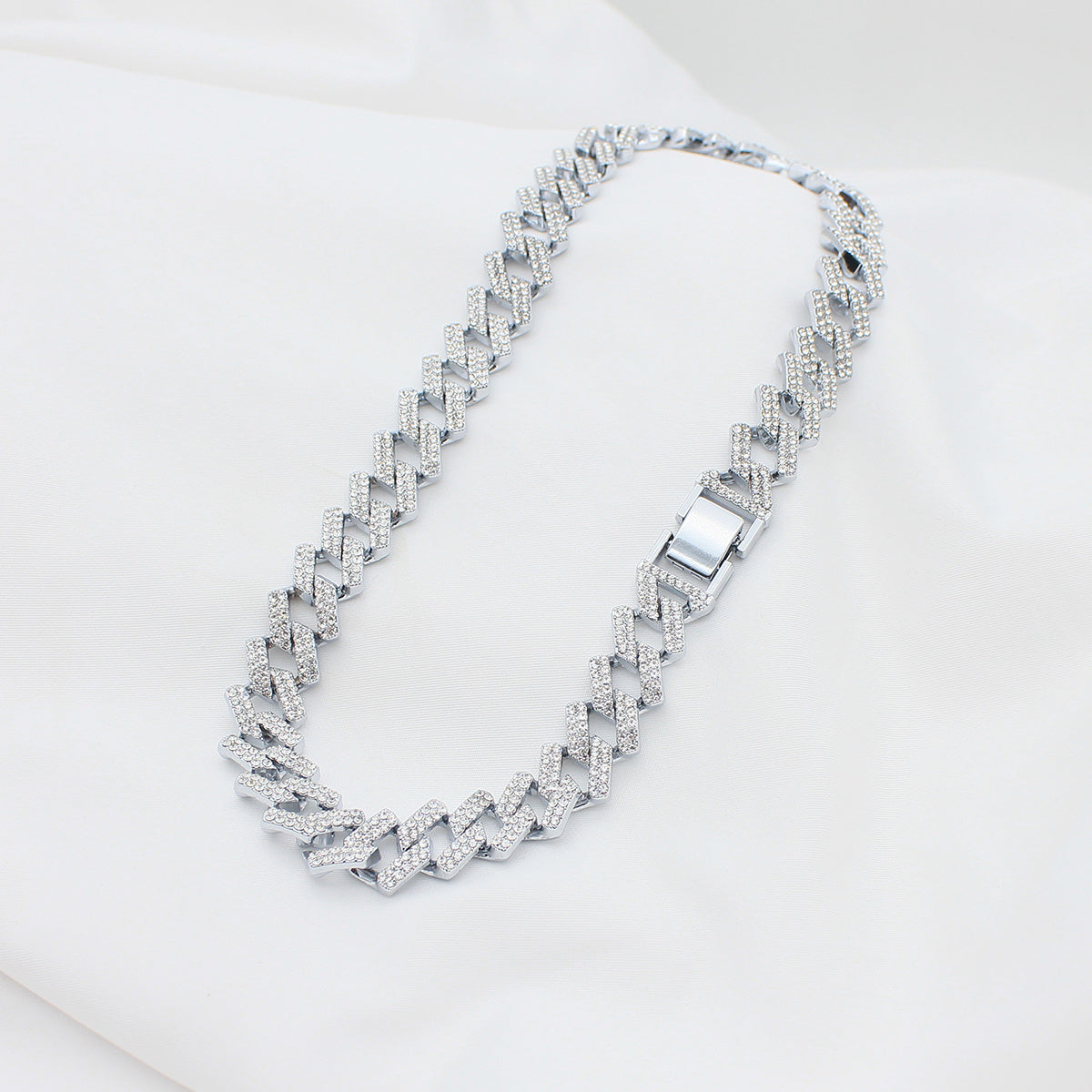 Elevate your style with this stunning Cuban link chain necklace adorned with shimmering rhinestones.