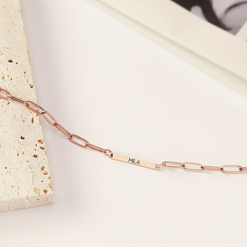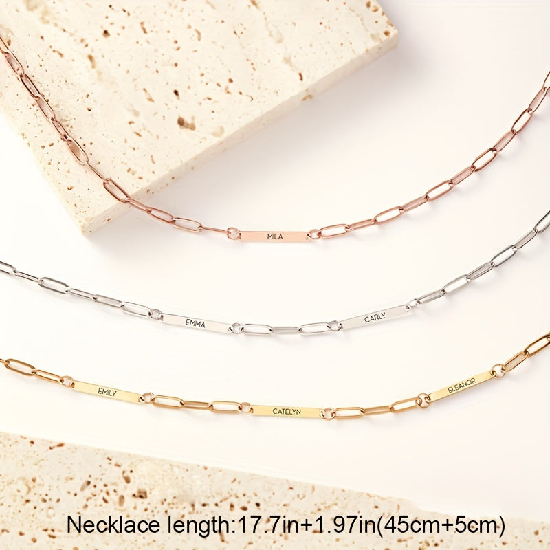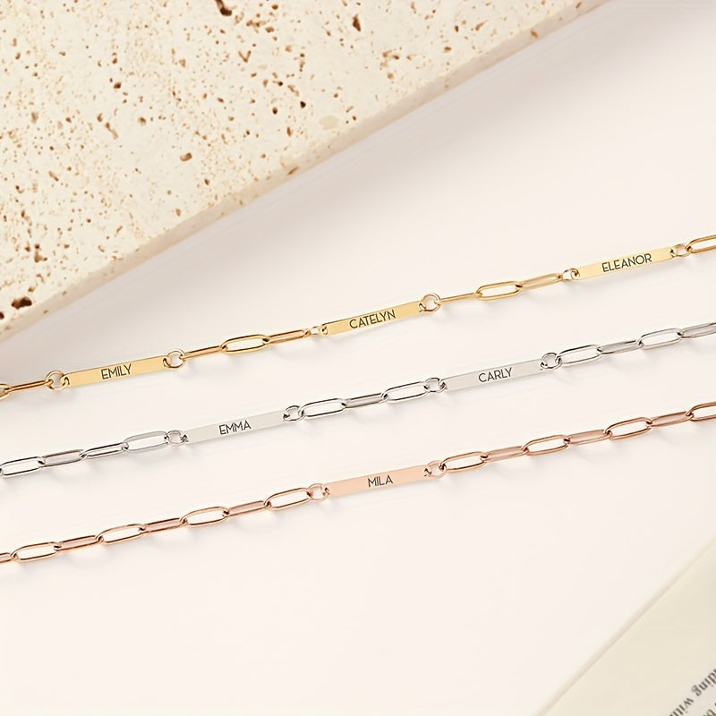 This personalized necklace is a perfect gift for men or women, couples, or friends. The name or message of your choice is beautifully engraved on this stylish piece of jewelry.