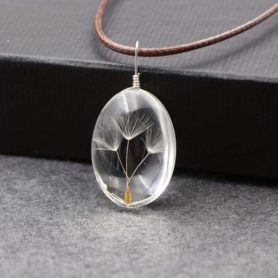 Dandelion Seed Crystal Ball Necklace Flower Gift