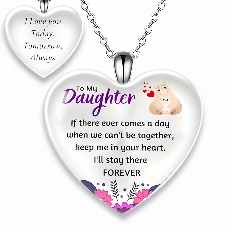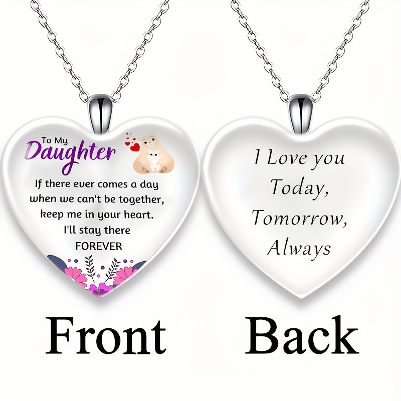 Daughter Heart Crystal Pendant Necklace Jewelry