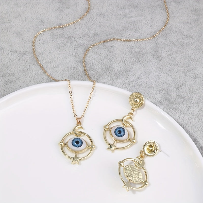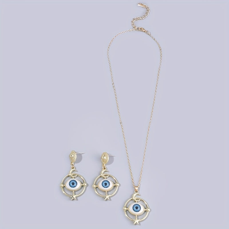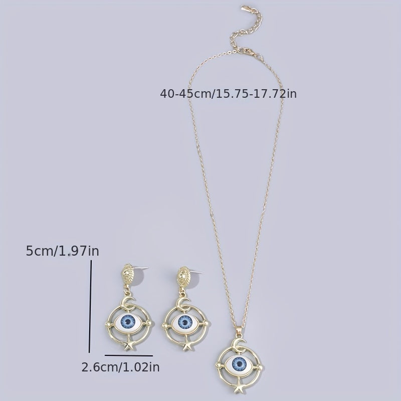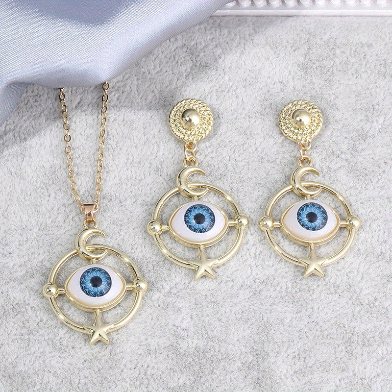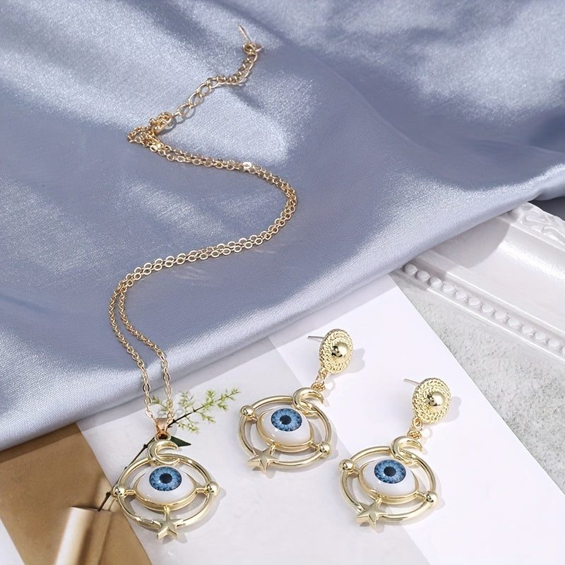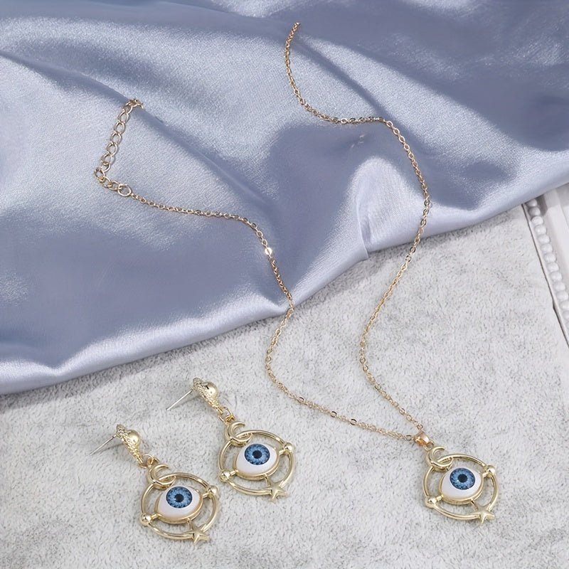 Complete your Halloween look with this set of devil eye earrings and necklace. Perfect for daily outfits and Halloween costumes.