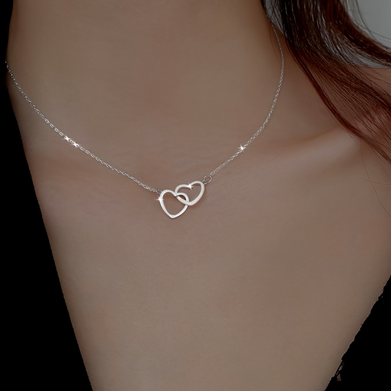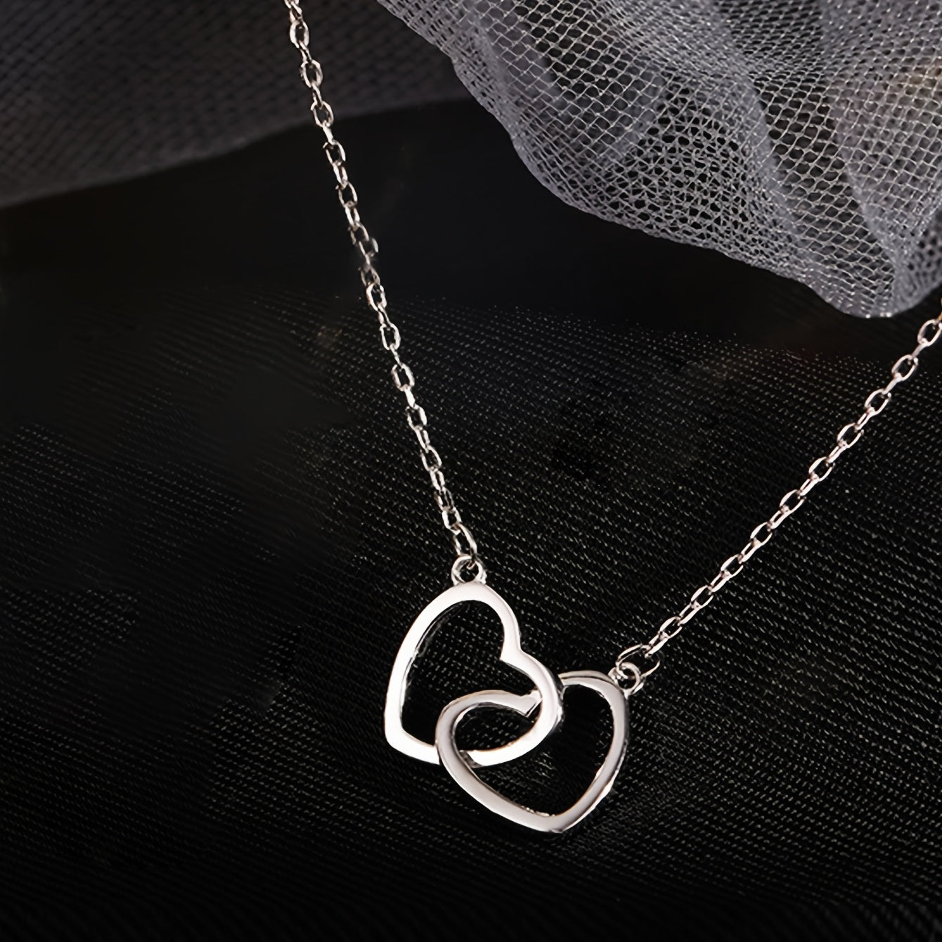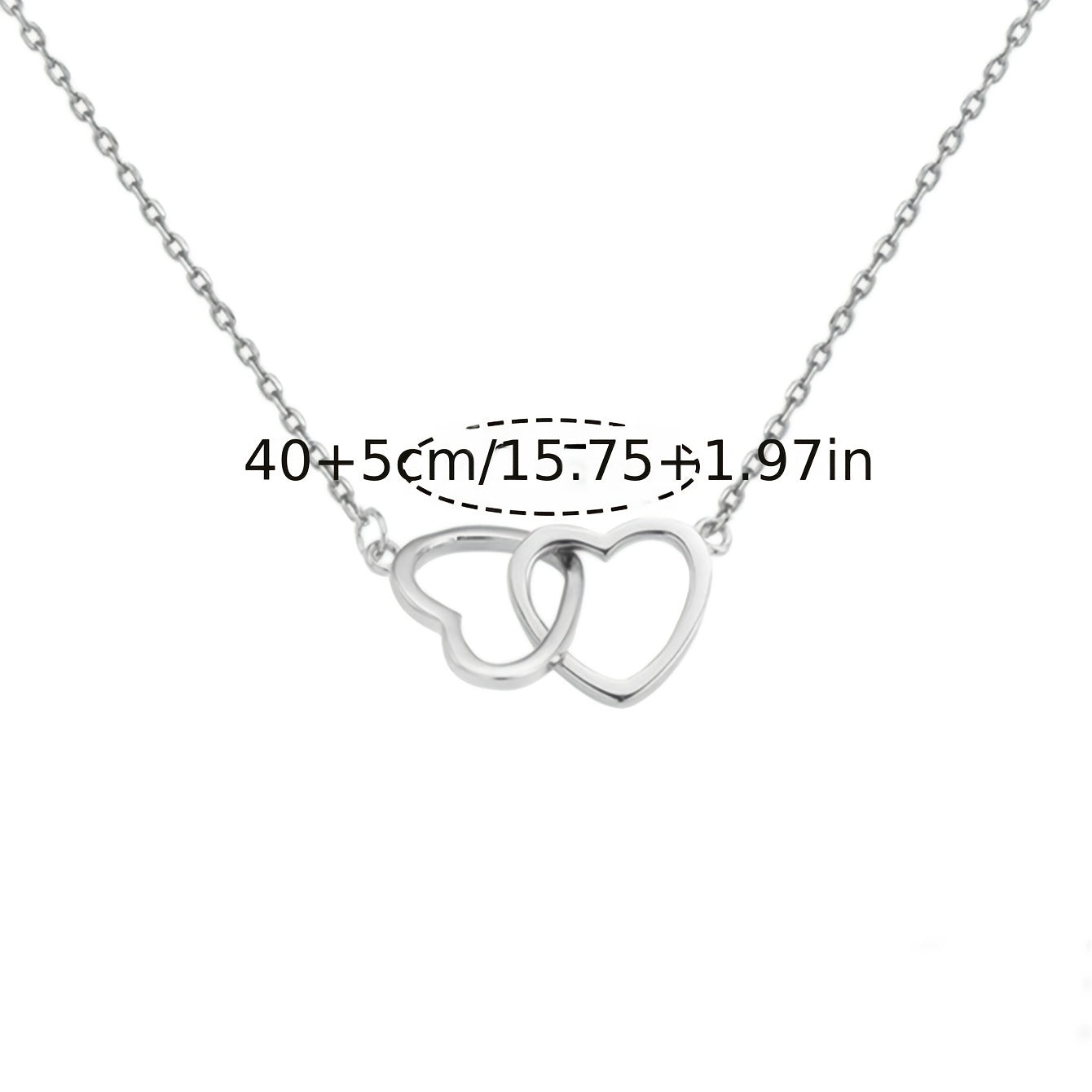This elegant necklace features a double ring heart design, perfect for adding a touch of romance to your outfit.