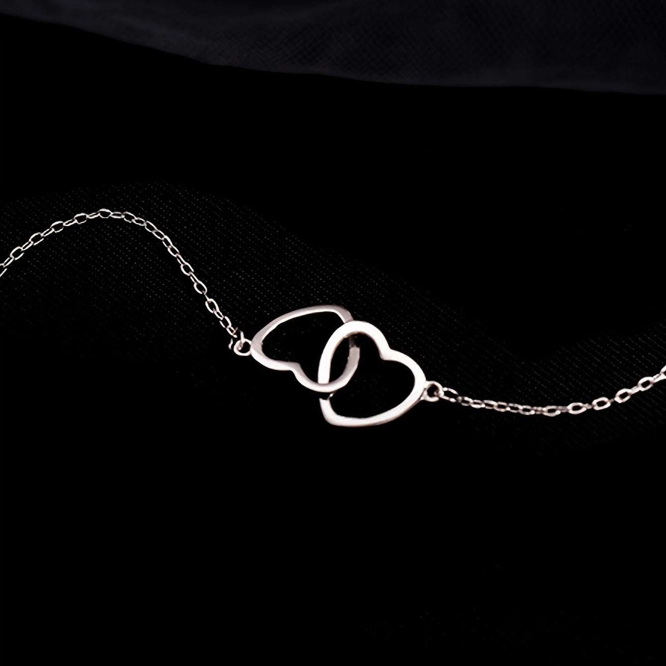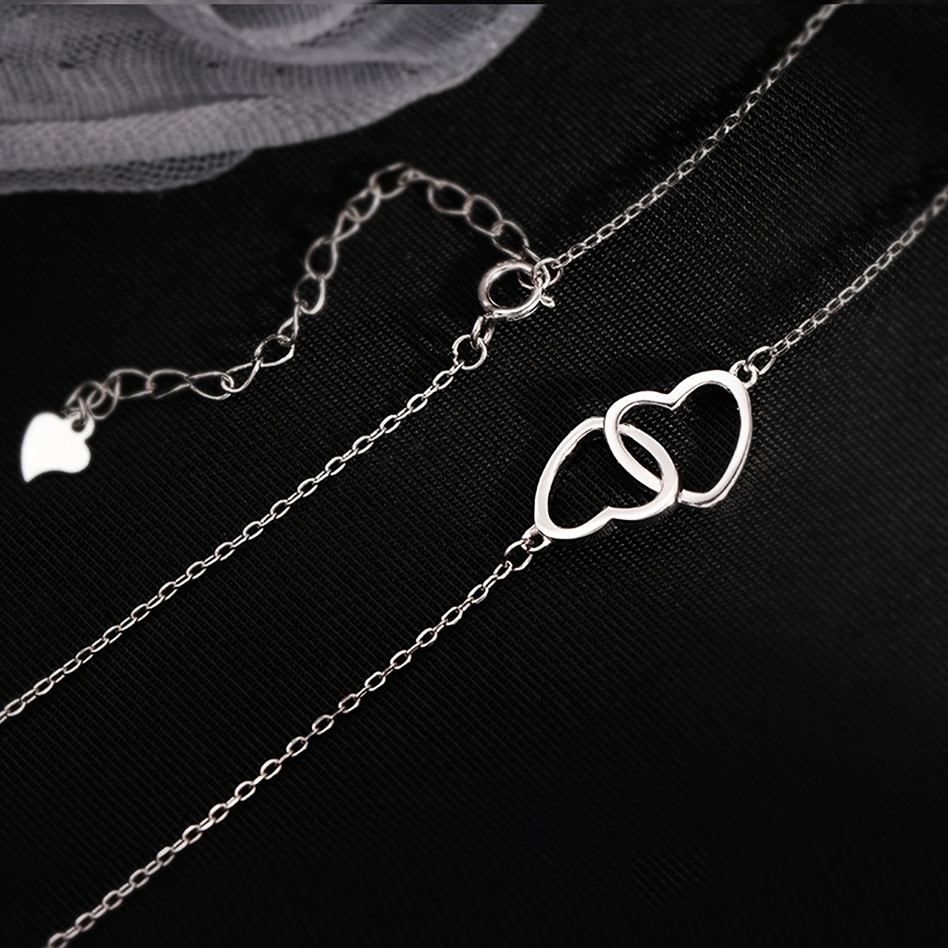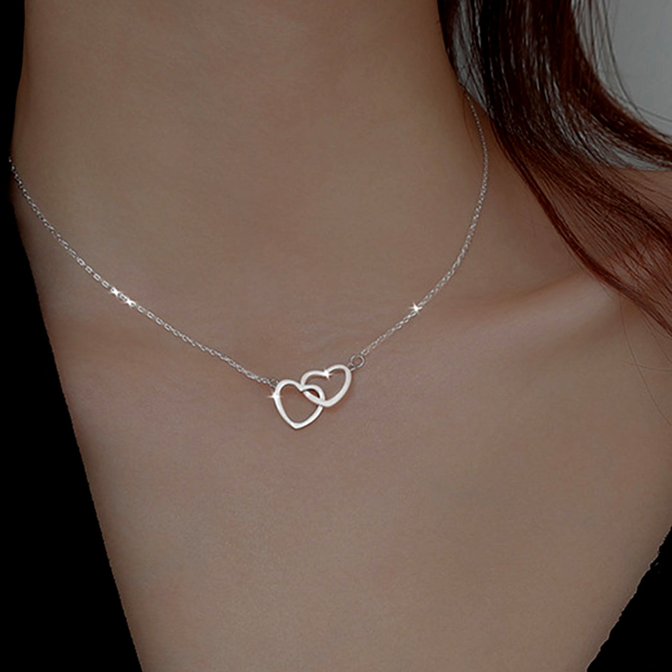 This elegant necklace features a double ring heart design, perfect for adding a touch of romance to your outfit.