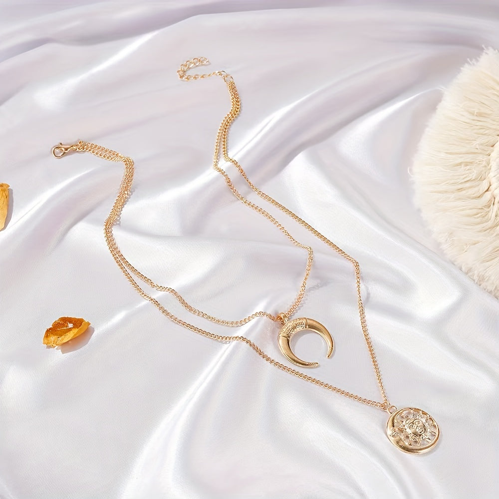 Add a touch of retro style with this versatile men's necklace featuring a double star theme. Perfect for casual or formal wear.