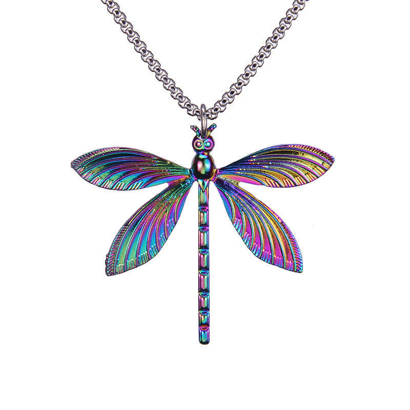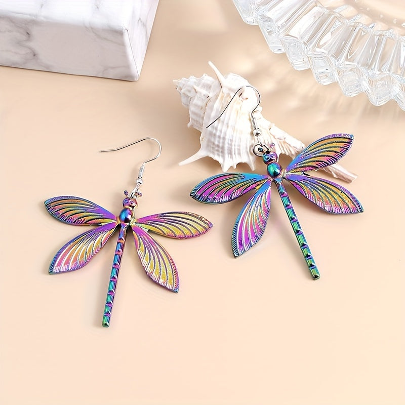 Enhance your style with these unique dragonfly earrings and retro necklace. The insect pattern adds a creative touch to your look.