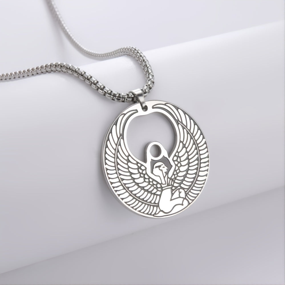 Embrace the timeless beauty of ancient Egypt with this stunning Isis necklace. Crafted from high-quality stainless steel, this necklace features intricate Egyptian designs.