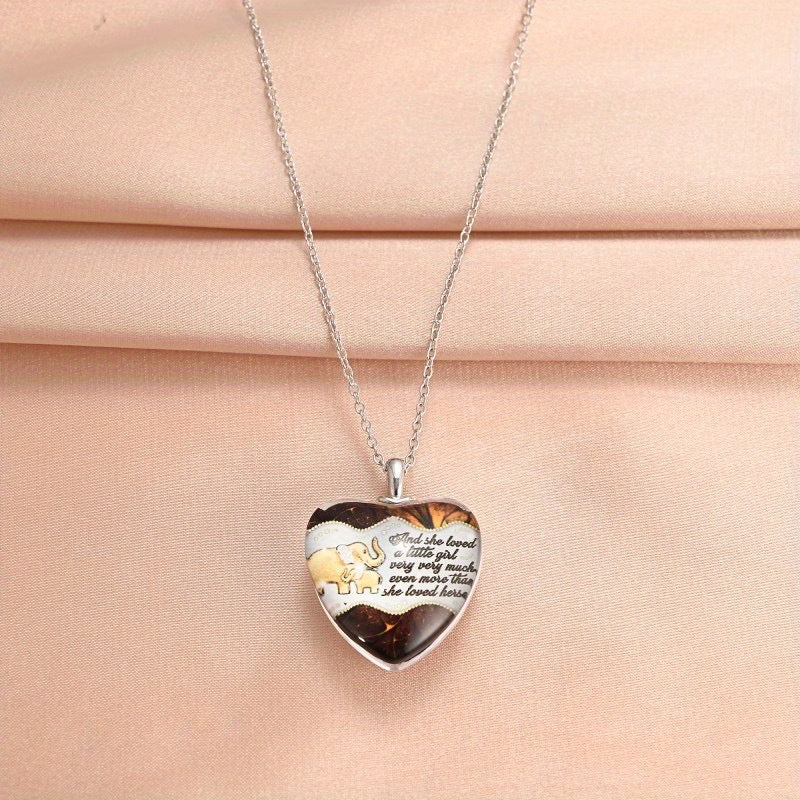 This heart shaped pendant necklace features an elephant pattern, making it a stylish accessory for both men and women. Perfect for Thanksgiving, Christmas, or birthdays.