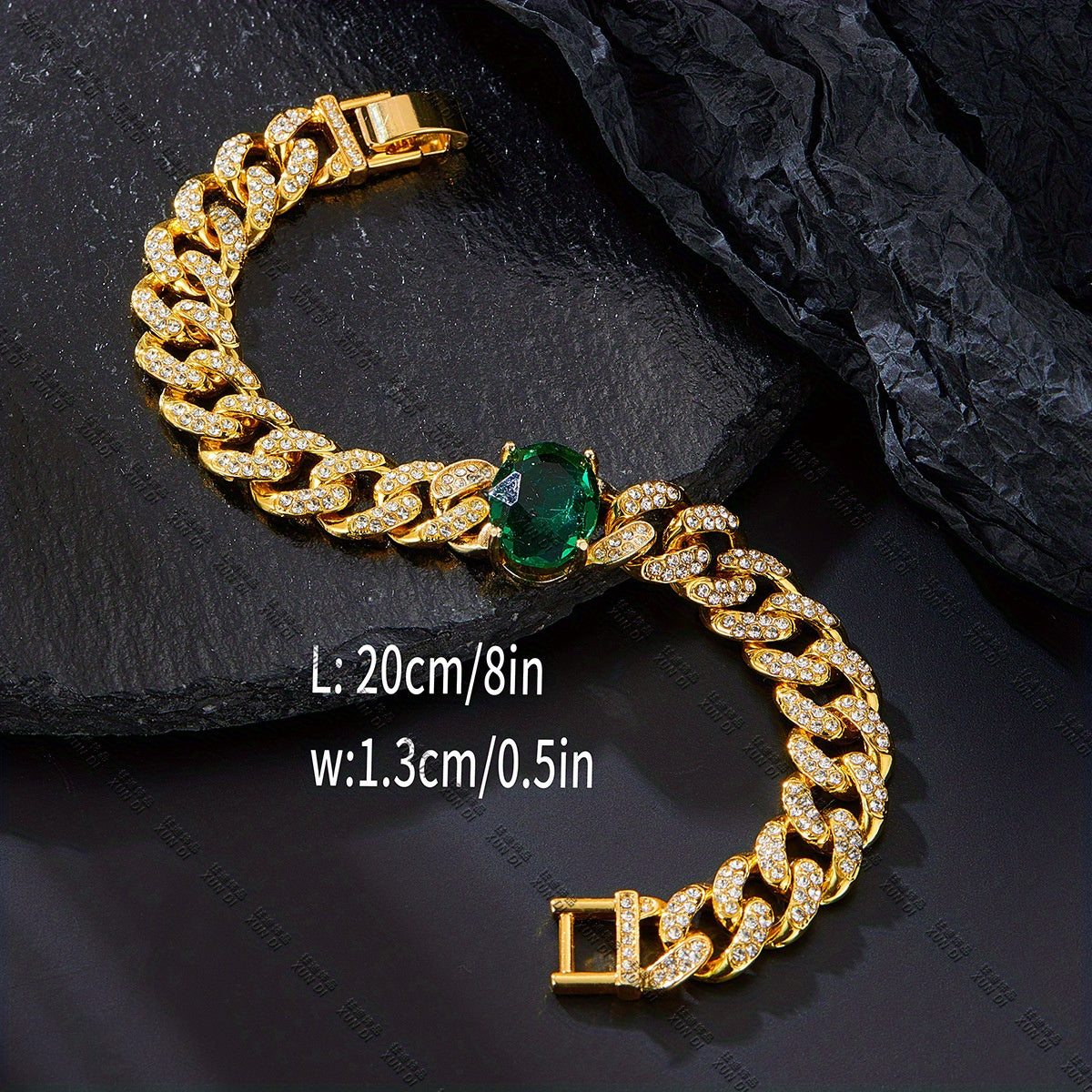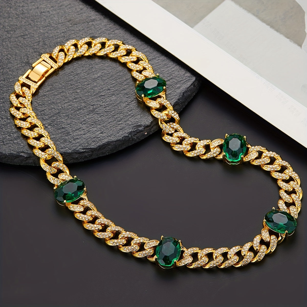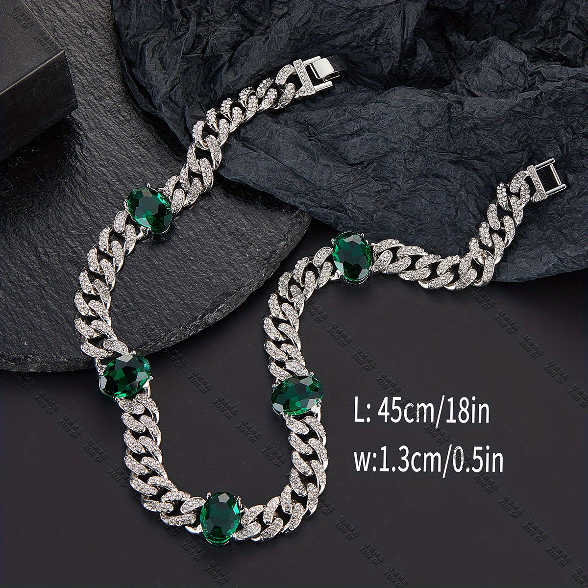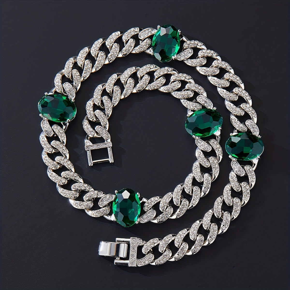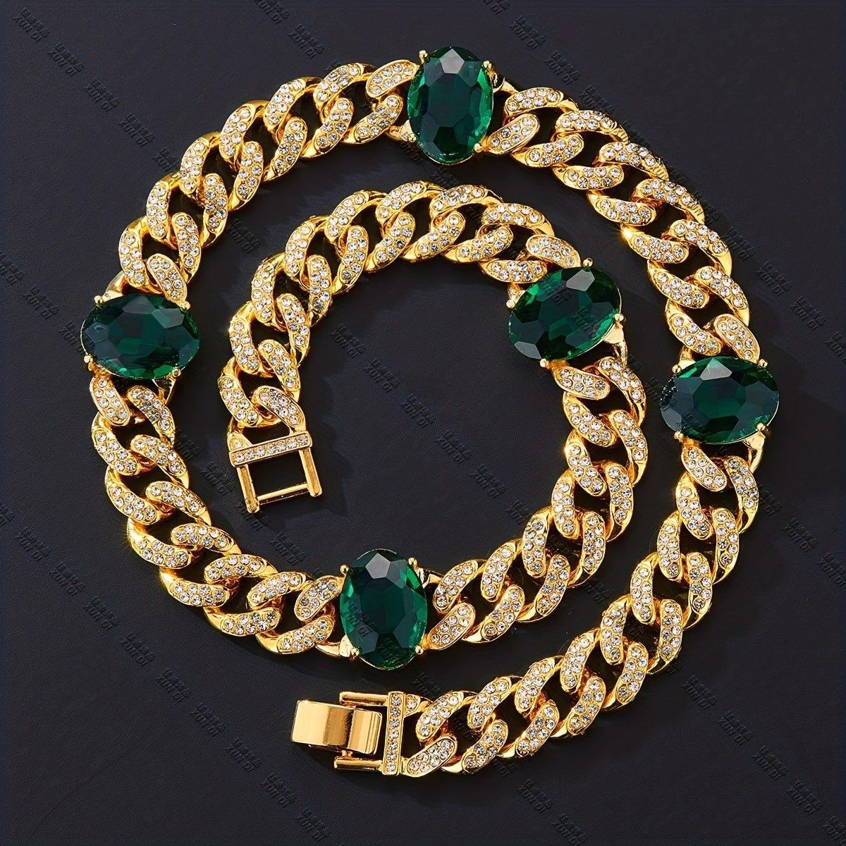 This exquisite round emerald Cuban link chain is adorned with full rhinestones, making it a stunning piece of rock jewelry for both men and women.
