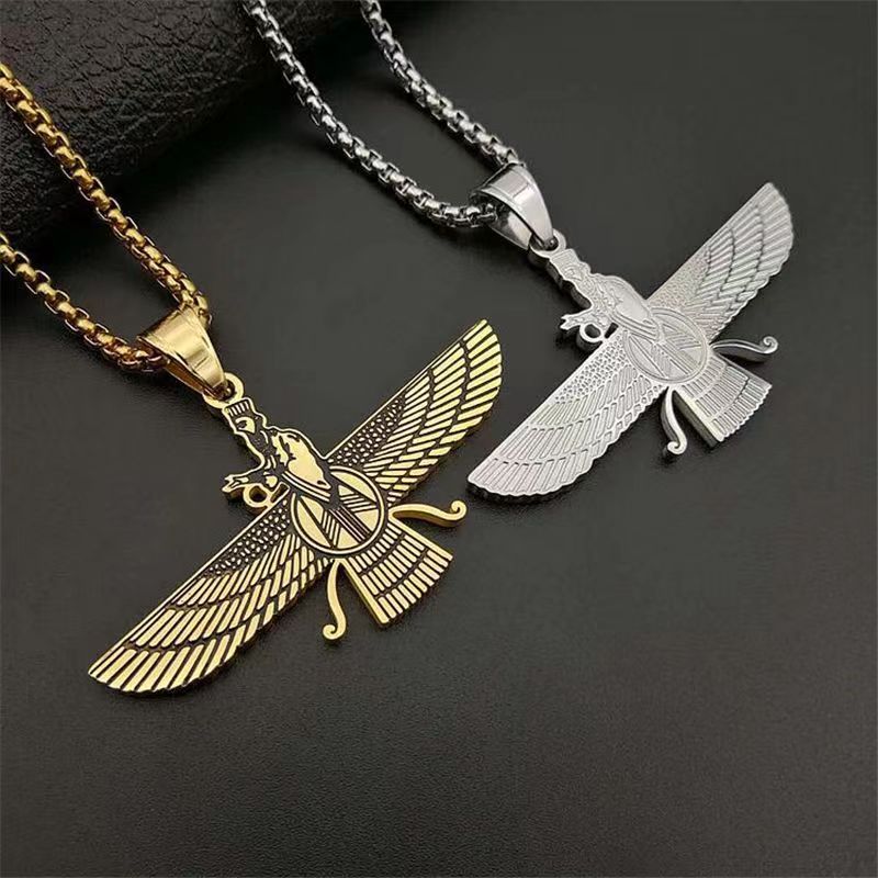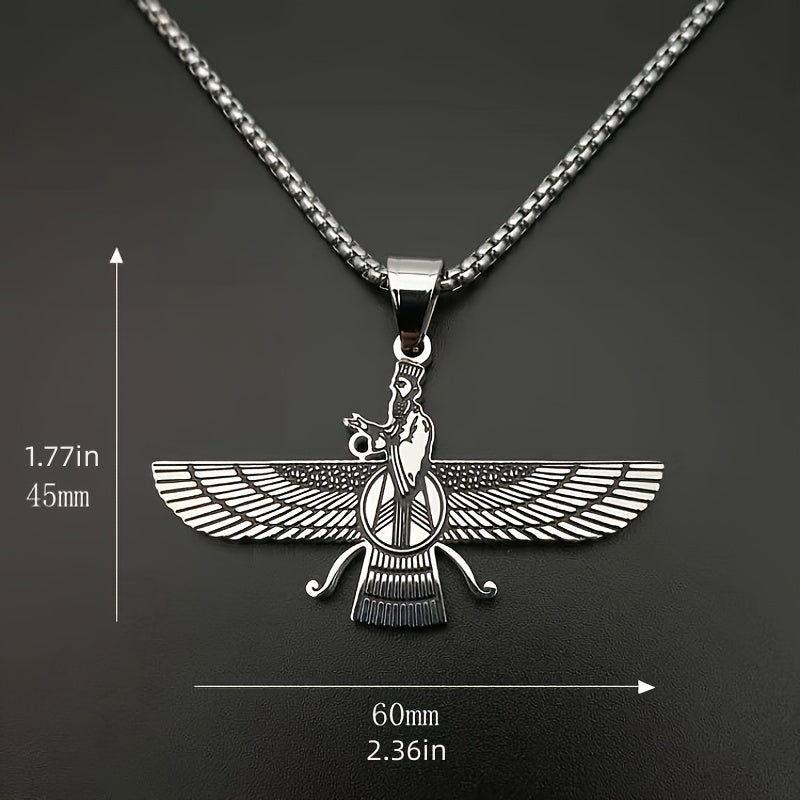 This Farvahar Persian pendant necklace is a stylish accessory for both men and women. Show off your creative personality with this unique piece of jewelry.