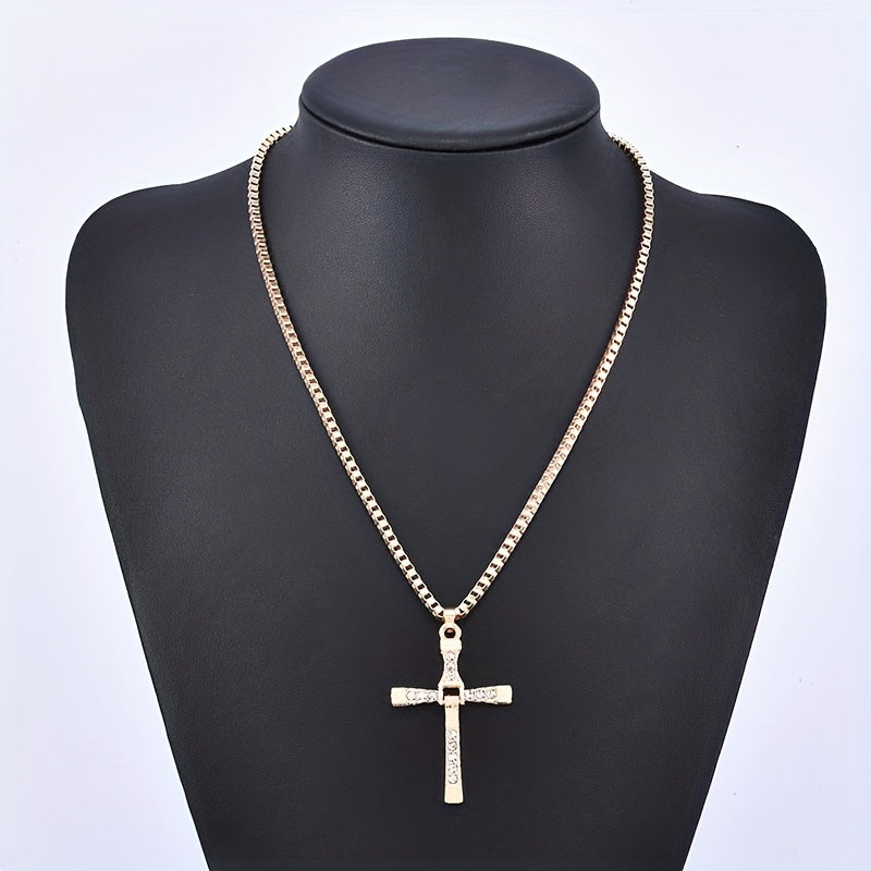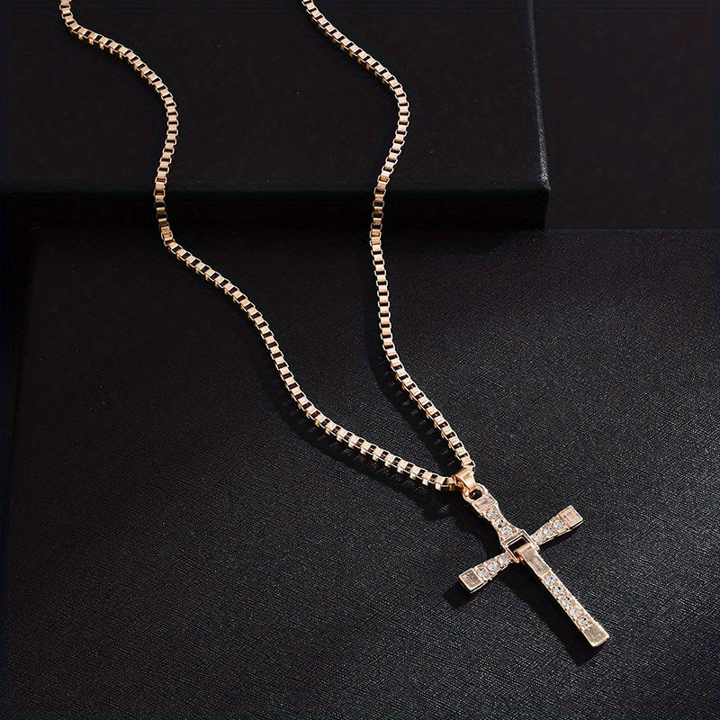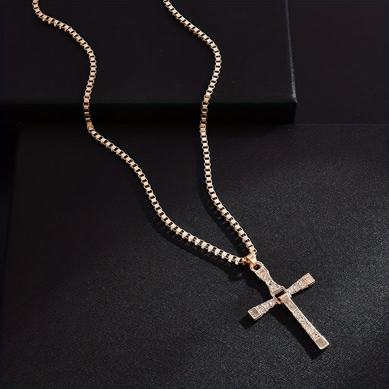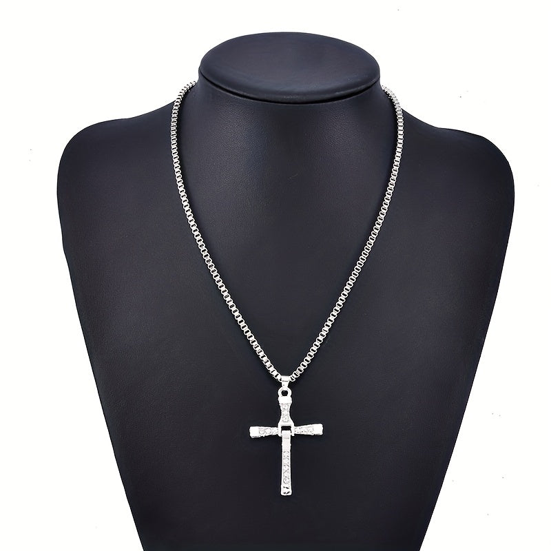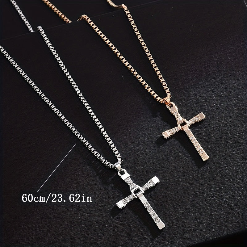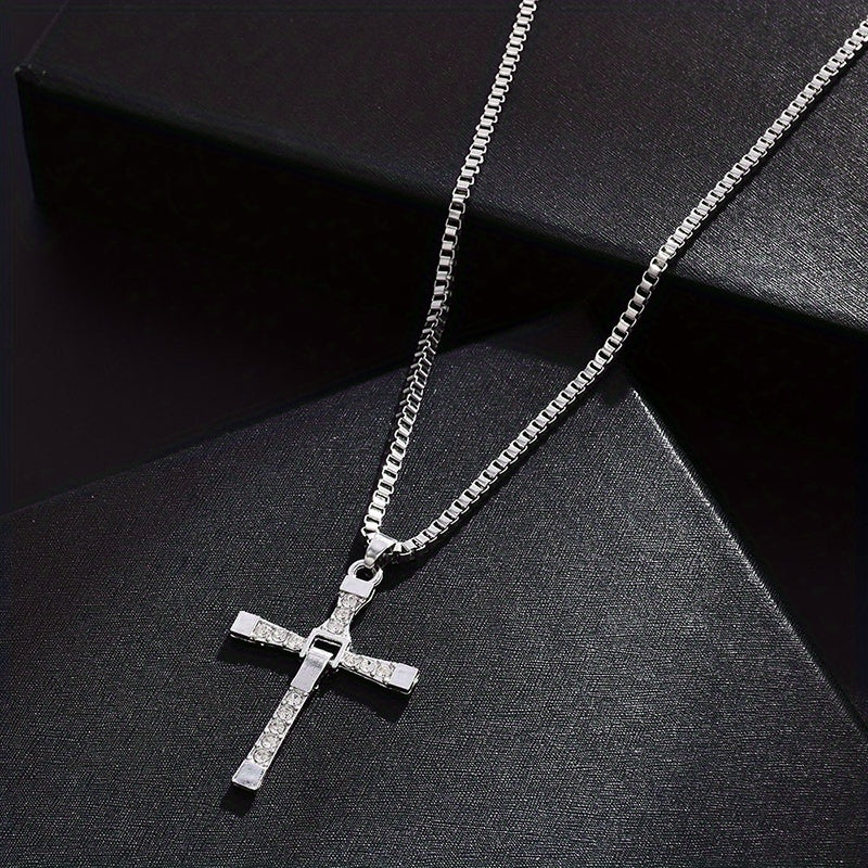 This stylish pendant features a cross design with faux diamond inlays. Perfect for men who appreciate a bold and fashionable look.