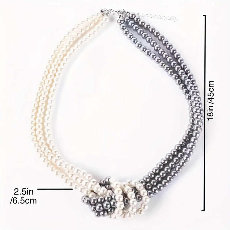 Faux Pearl Short & Knotted Necklace Set