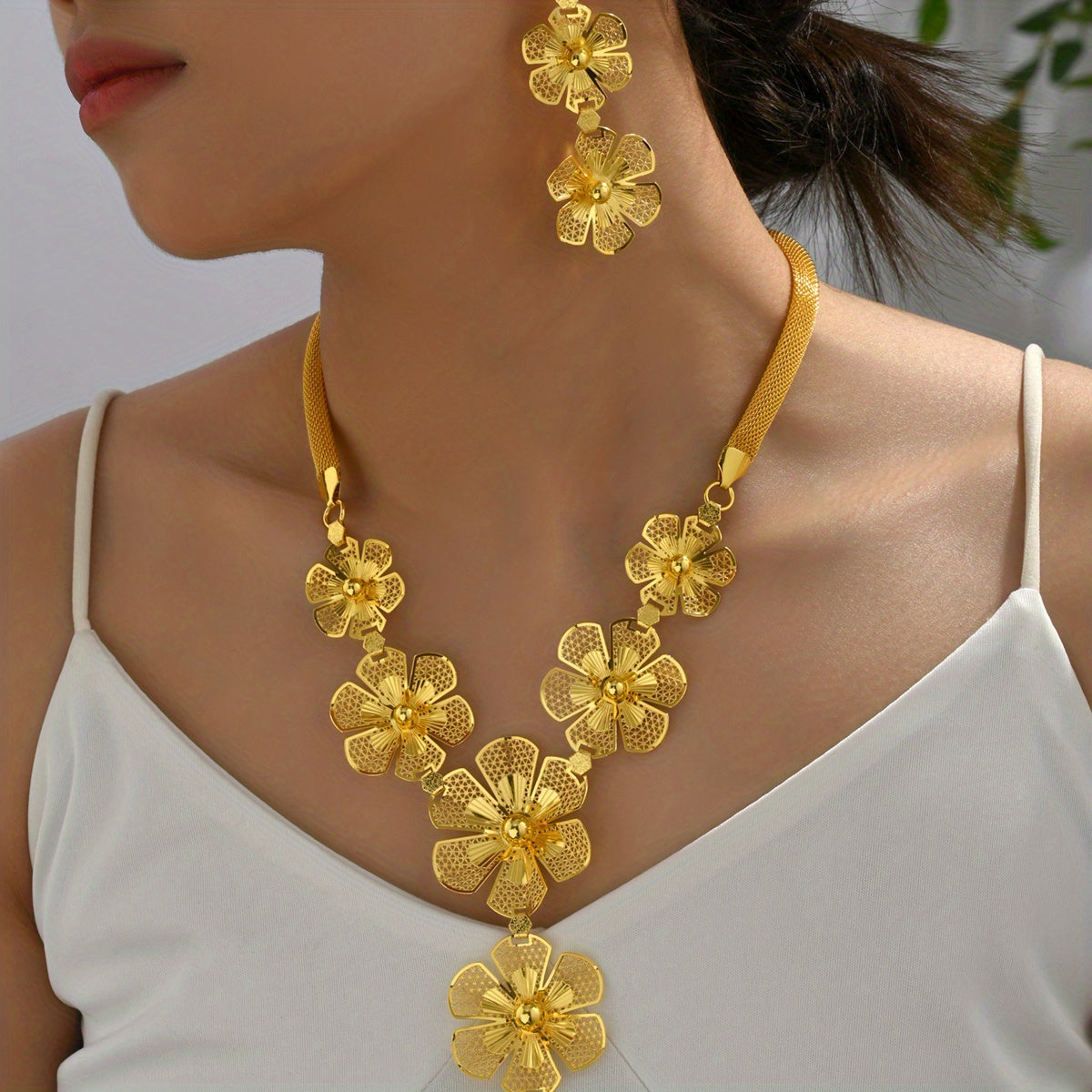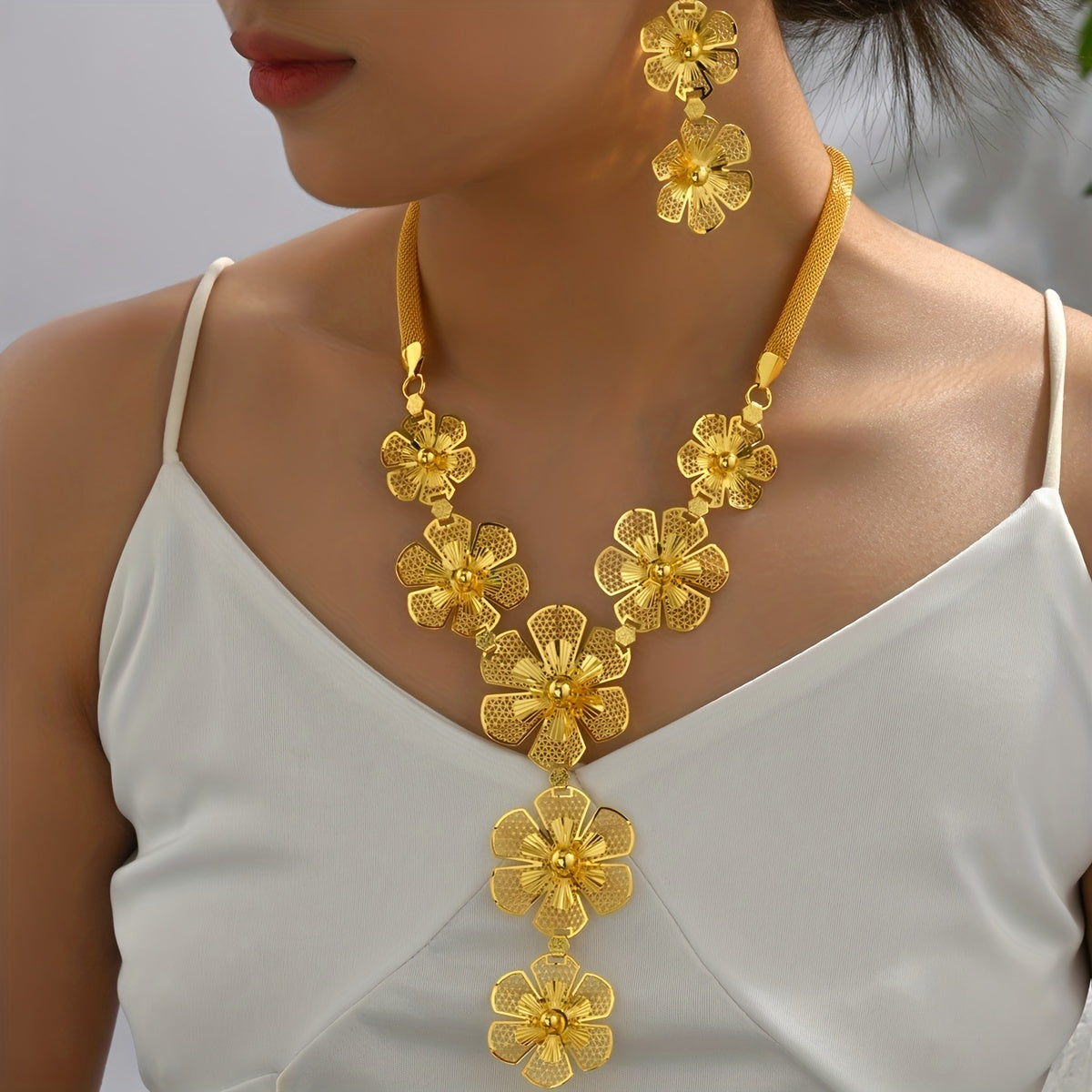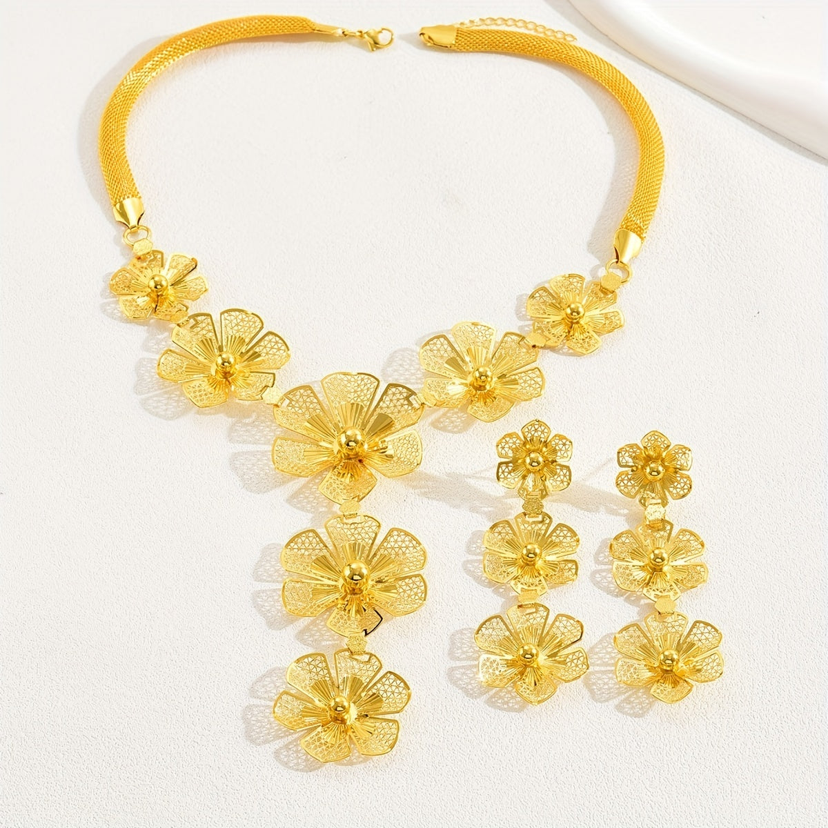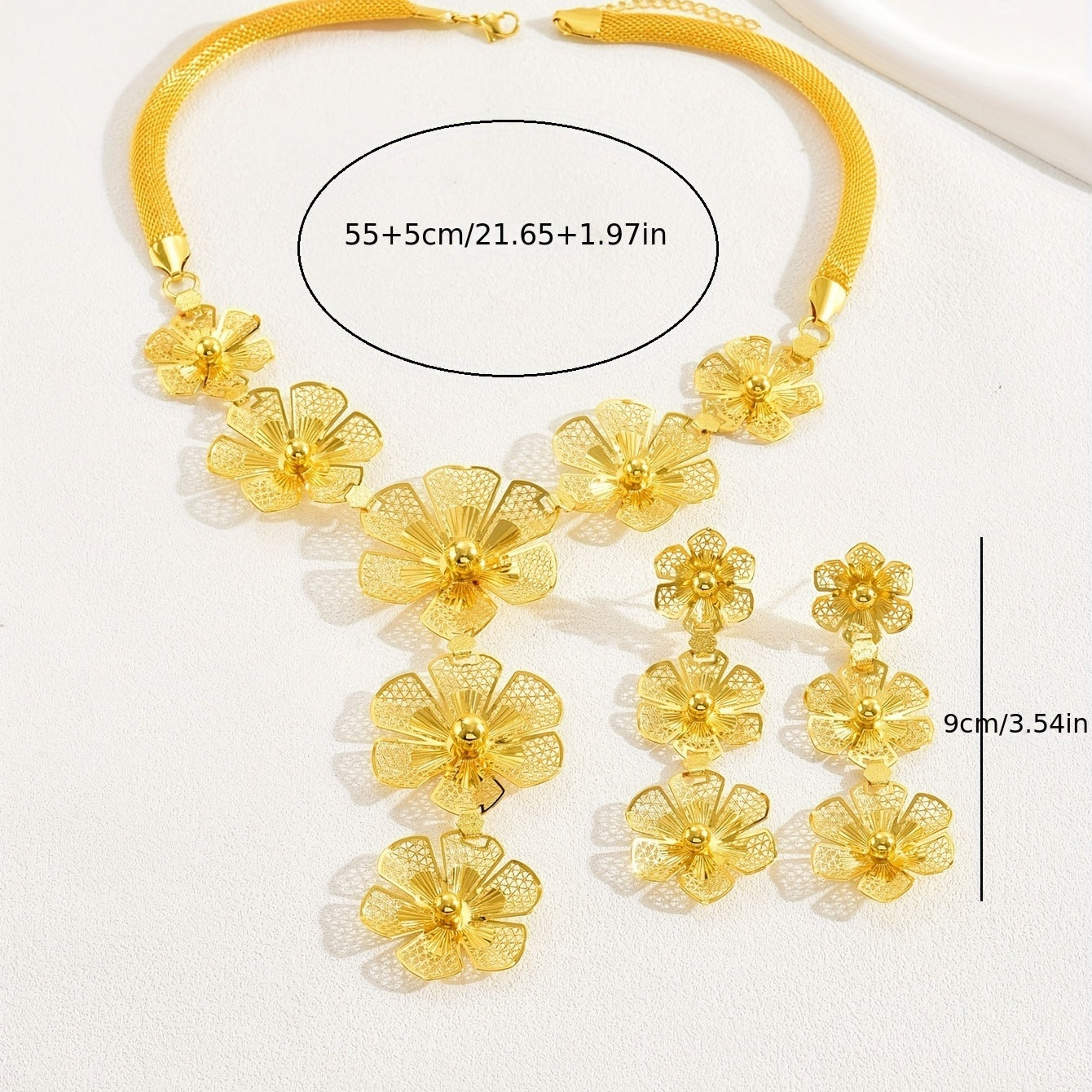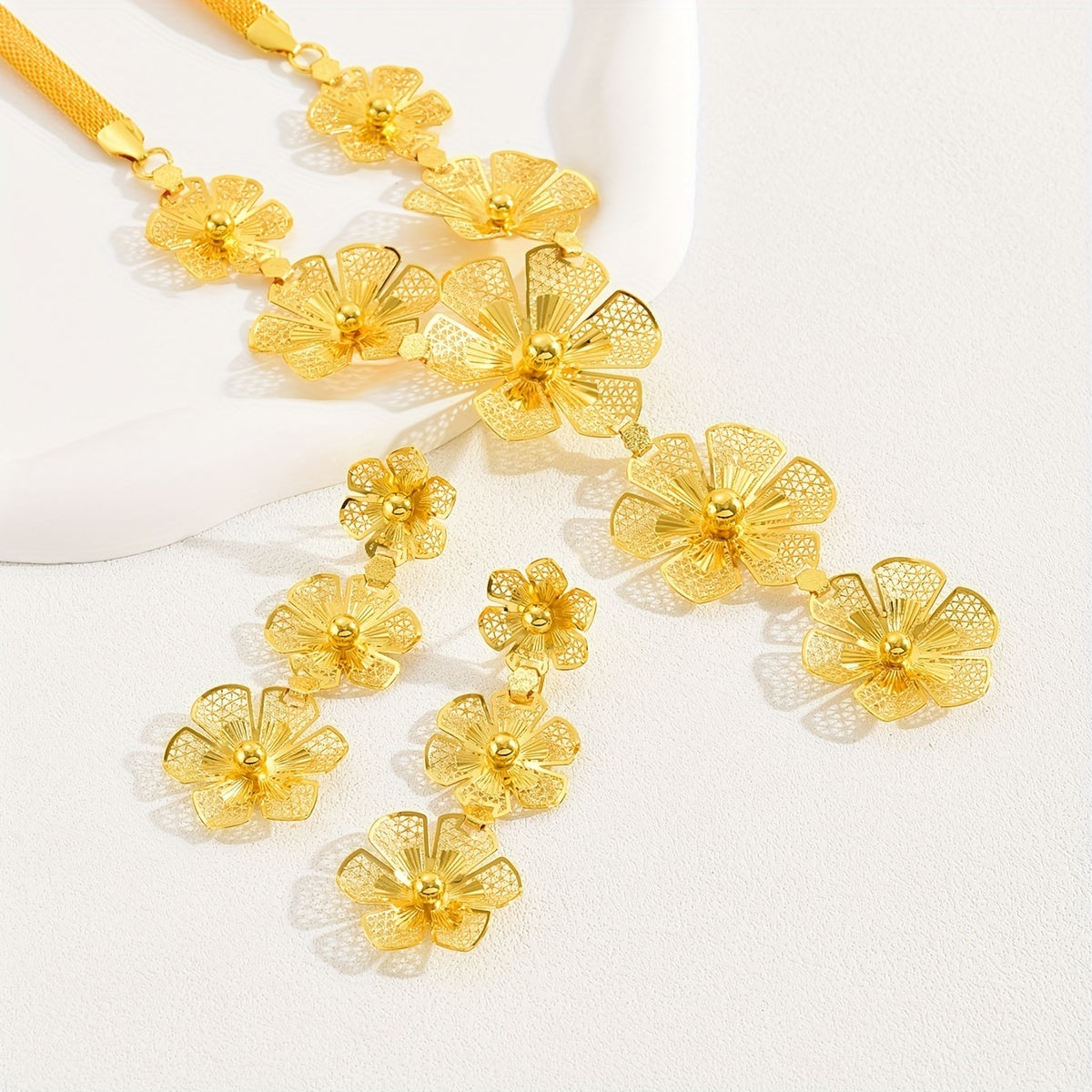 Floral Necklace Tassel Earrings Bridal Jewelry Set 18K Plated Golden Ornament