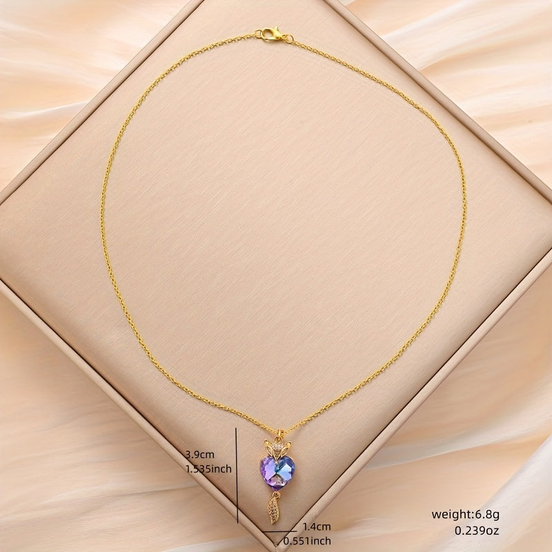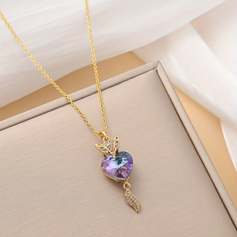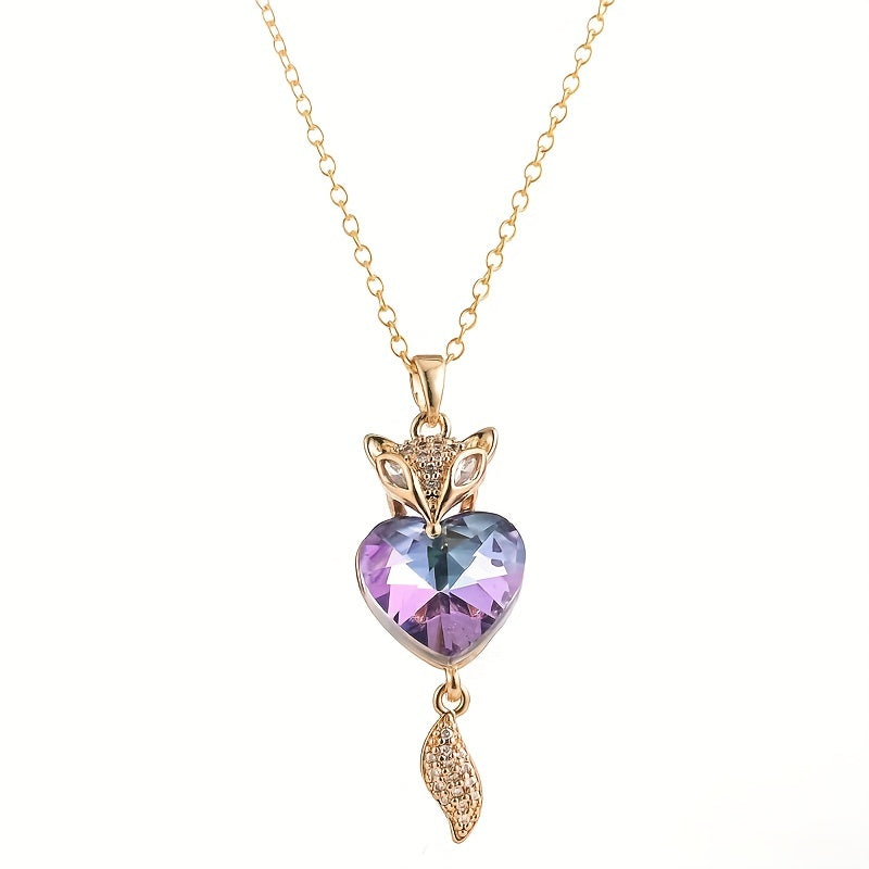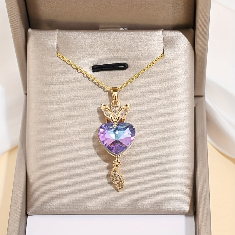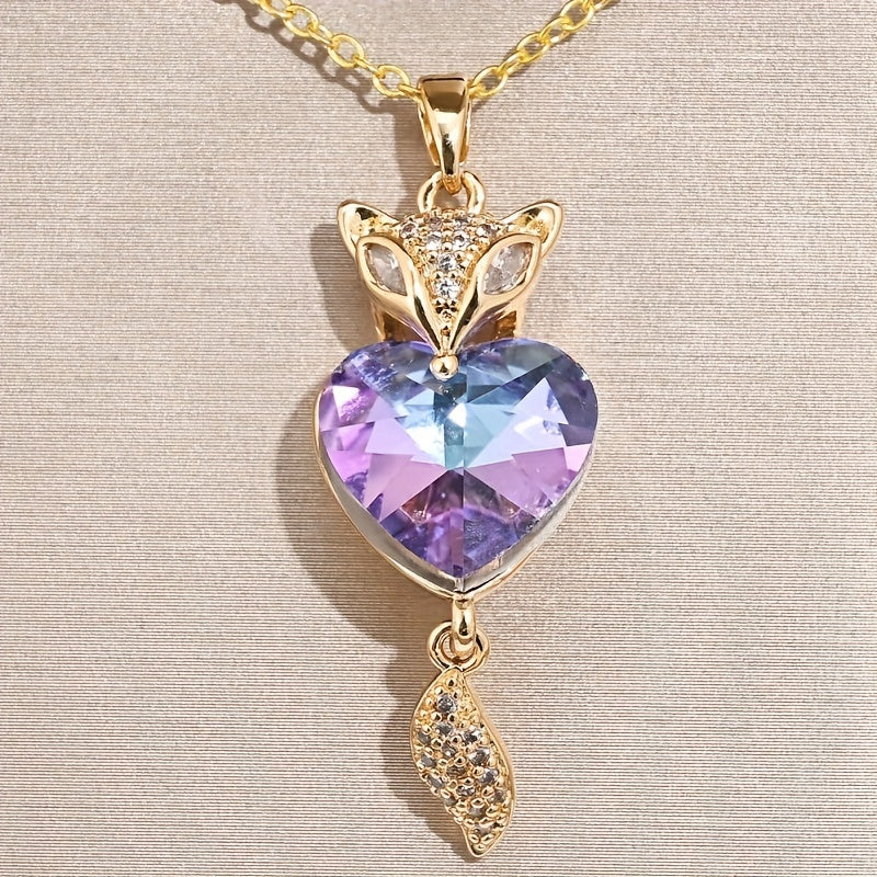 This romantic fox pendant necklace features a heart-shaped crystal, perfect for a special lady on her birthday, wedding or anniversary.